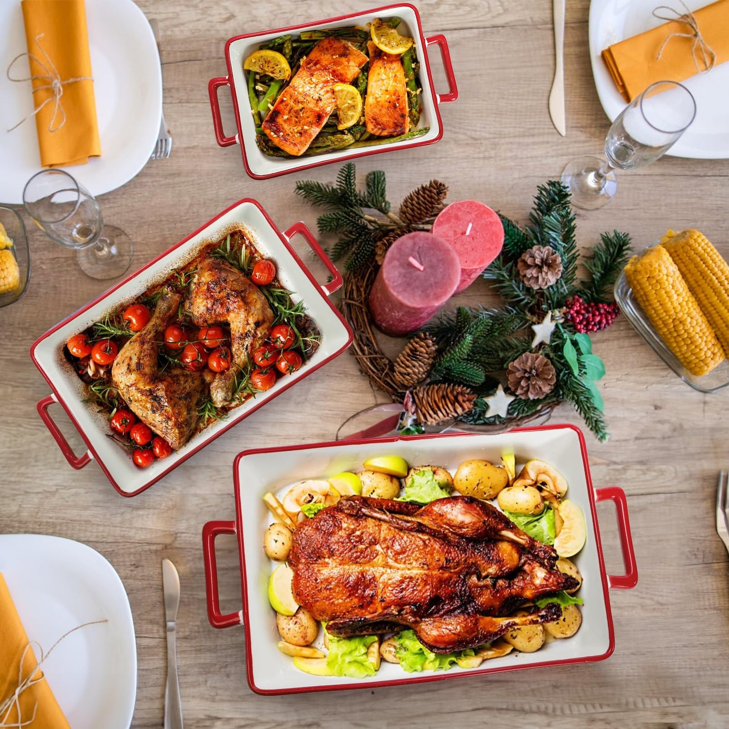 WRINGKIT Set of 3 Ceramic Baking Dishes, Casserole Dishes for Oven, Rectangular Bakeware with Handles, Ceramic Bakeware for Cooking, Baking Cakes, Wedding Gift, 3 Sizes (14.5''/12.7''/9.5'')