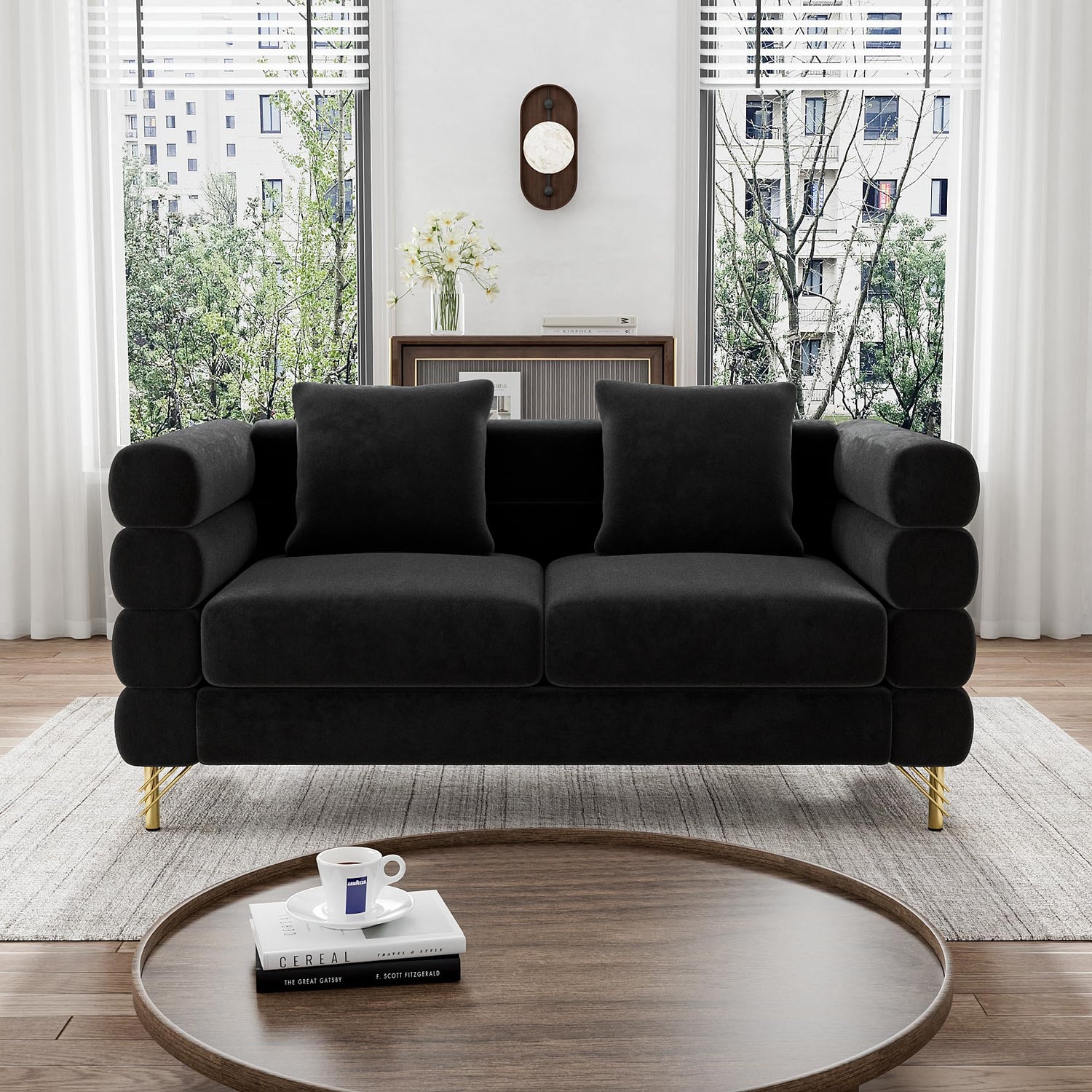 Wrofly Cloud Couch for Living Room, 59" Modern Overstuffed Deep Seat Velvet Loveseat Sofa with 2 Pillows, Comfy Upholstered 2 Seater Love Seat for Bedroom Office, Jet Black Velvet