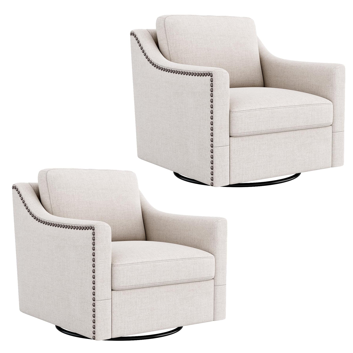 Wrofly Swivel Barrel Chair Set of 2, Oversized Swivel Accent Chair with Comfy Back Pillow, Modern Upholstered Reading Lounge Chairs for Living Room Bedroom Office Club, Beige Linen