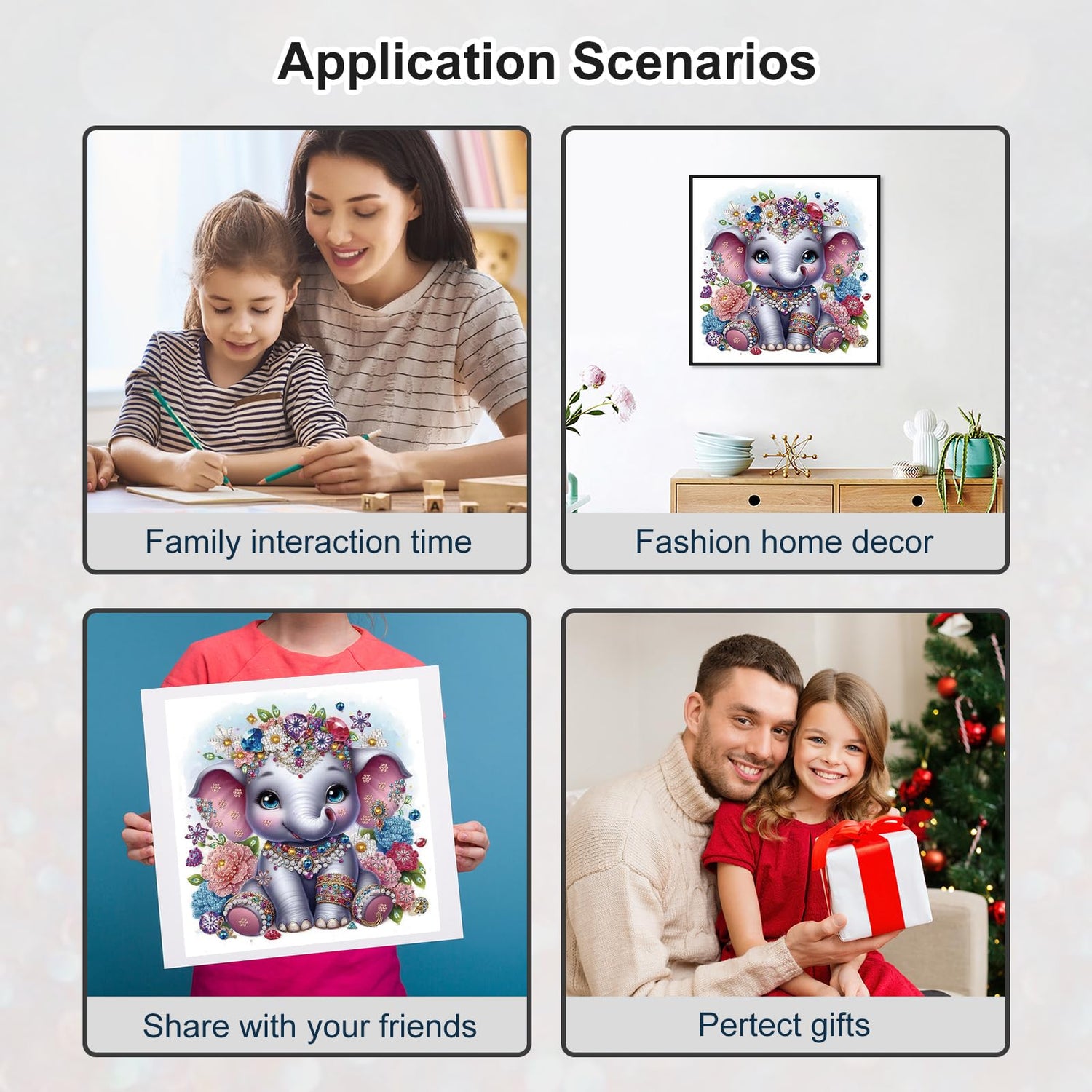 - 【SPECIAL SHAPE DRILL】Elephant Diamond Painting Kits for Adults, Use the unique Crystal Rhinestone Diamond and the designed pattern to make a reasonable combination, This is a new type of special shape diamond, including circles, diamond-shaped columns and drop-shaped to realize the shining and vivid handmade crafts