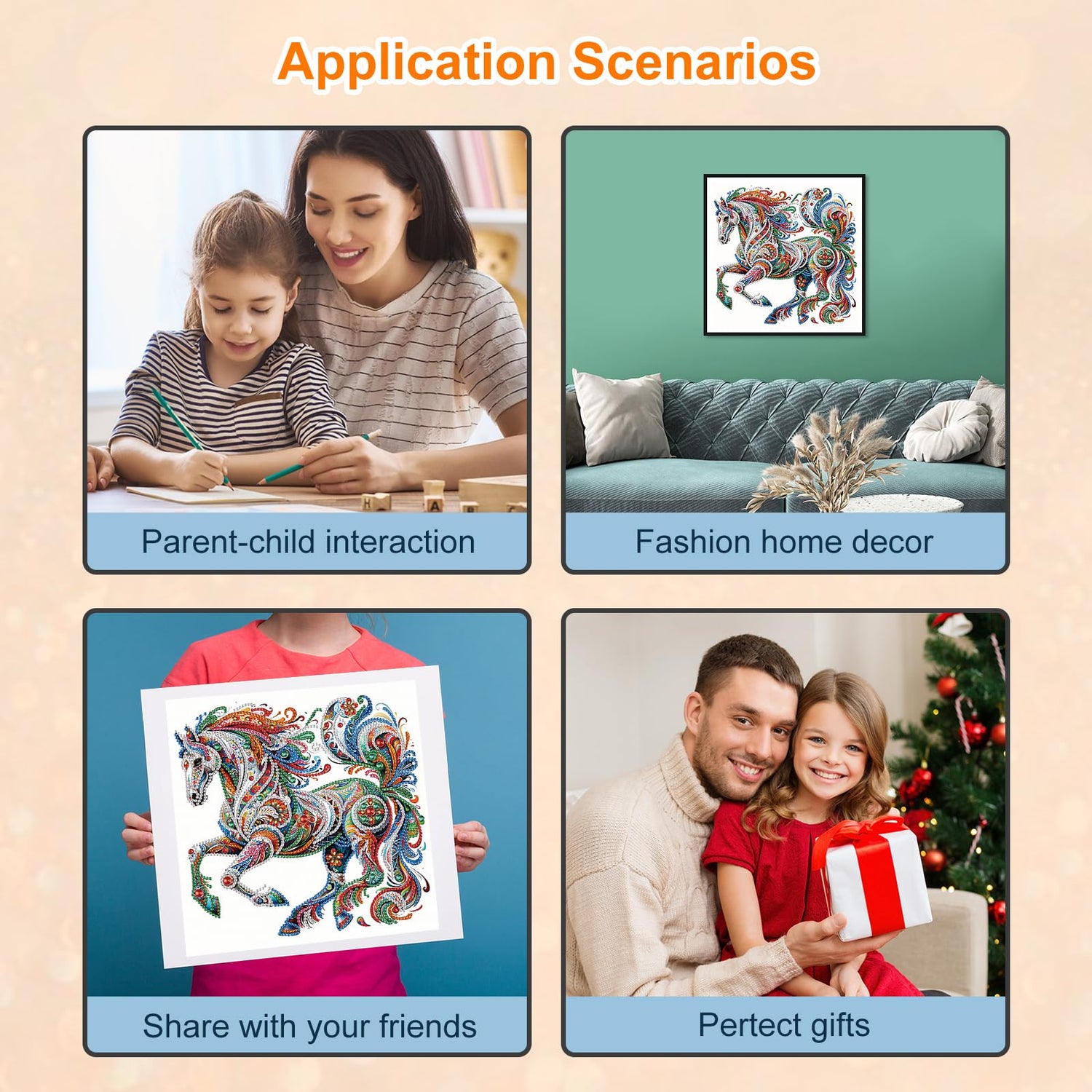 - 【SPECIAL SHAPE DRILL】Horse Diamond Painting Kits for Adults, Use the unique Crystal Rhinestone Diamond and the designed pattern to make a reasonable combination, This is a new type of special shape diamond, including circles, diamond-shaped columns and drop-shaped to realize the shining and vivid handmade crafts
