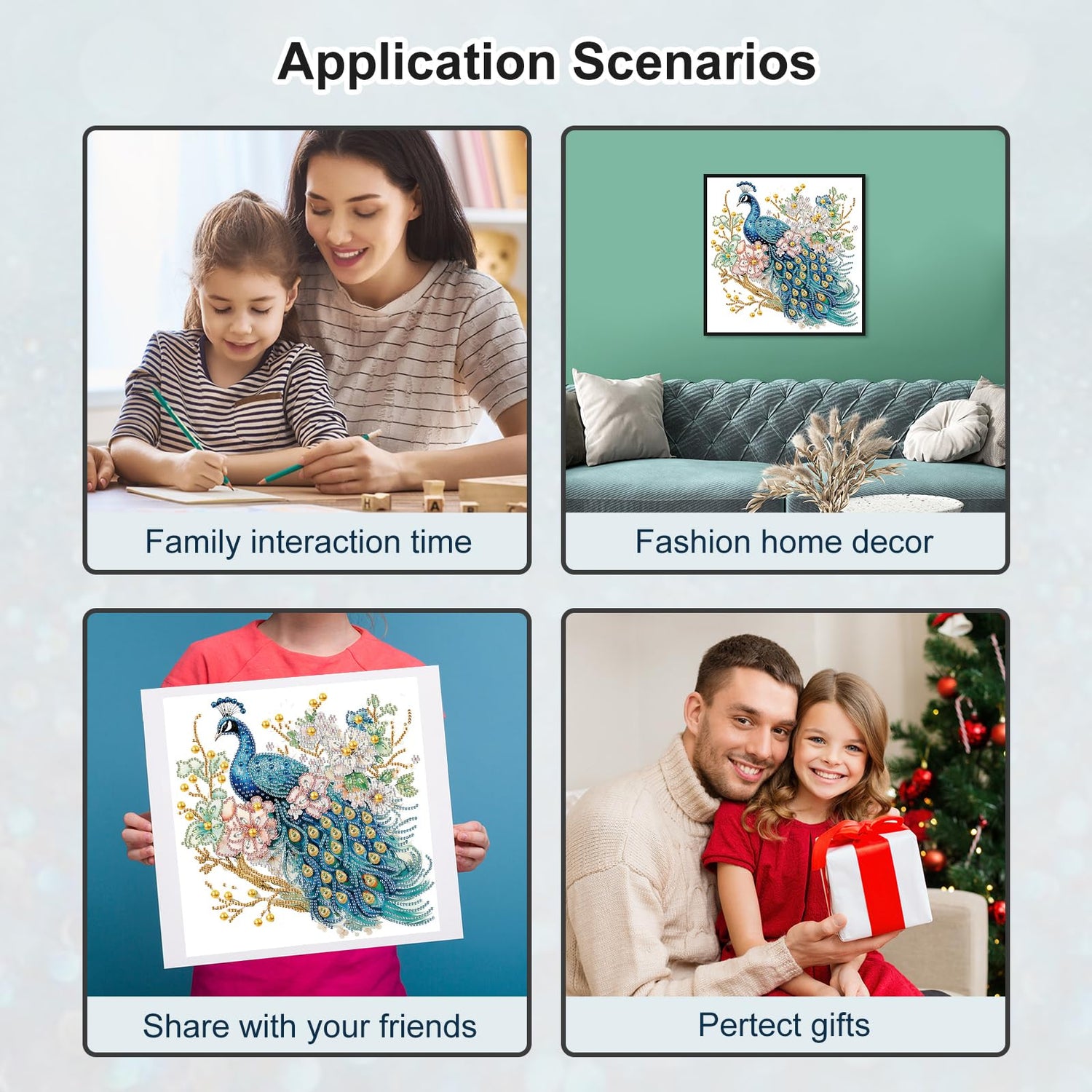 - 【SPECIAL SHAPE DRILL】Peacock Diamond Painting Kits for Adults, Use the unique Crystal Rhinestone Diamond and the designed pattern to make a reasonable combination, This is a new type of special shape diamond, including circles, diamond-shaped columns and drop-shaped to realize the shining and vivid handmade crafts