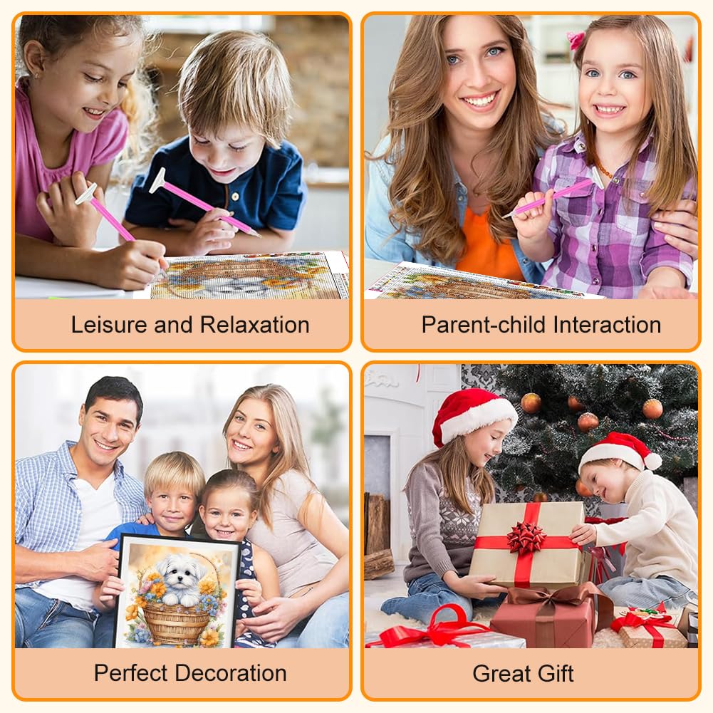 - 【DIAMOND ART】Dog Diamond Painting Kits for Adults, round diamonds cover the whole picture, making the picture more shiny and realistic, it is the most popular DIY decoration at the moment. If you have enough time and patience and like challenging project, this is totally for you