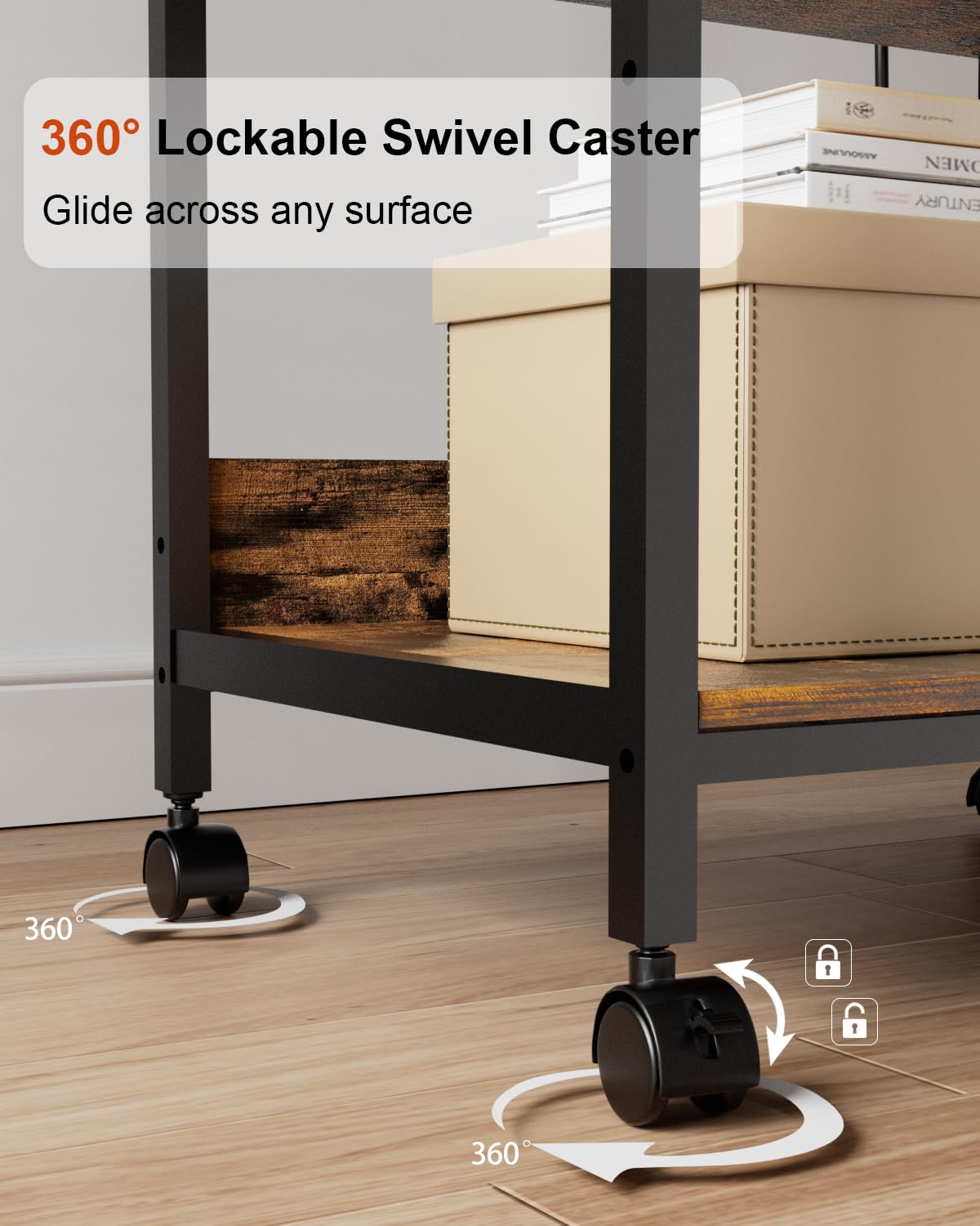 - CONVENIENT MOBILITY: The printer cart with wheels has 4 lockable smooth-rolling wheels for effortless movement, enabling you to easily rearrange your office or clean it. Besides, 2 wheels have brakes to lock the computer cart in place when stability is needed.