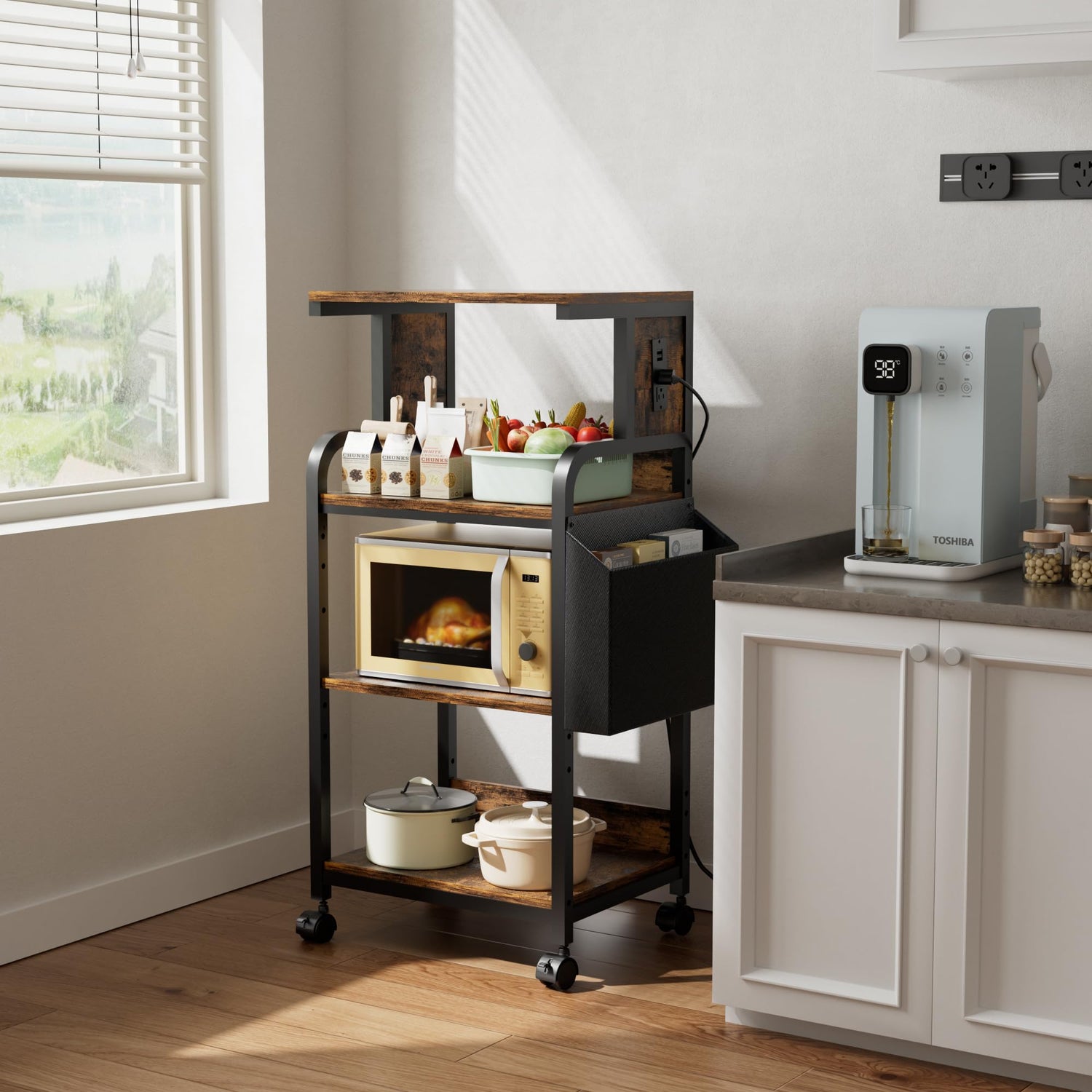 WTINAPIG Tall Printer Stand with Storage Adjustable Shelf and Bag, 4-Tier Large Printer Table with Charging Station for Home Office, Printer Cart with Wheels for 3D Printer Shredder Scanner Fax