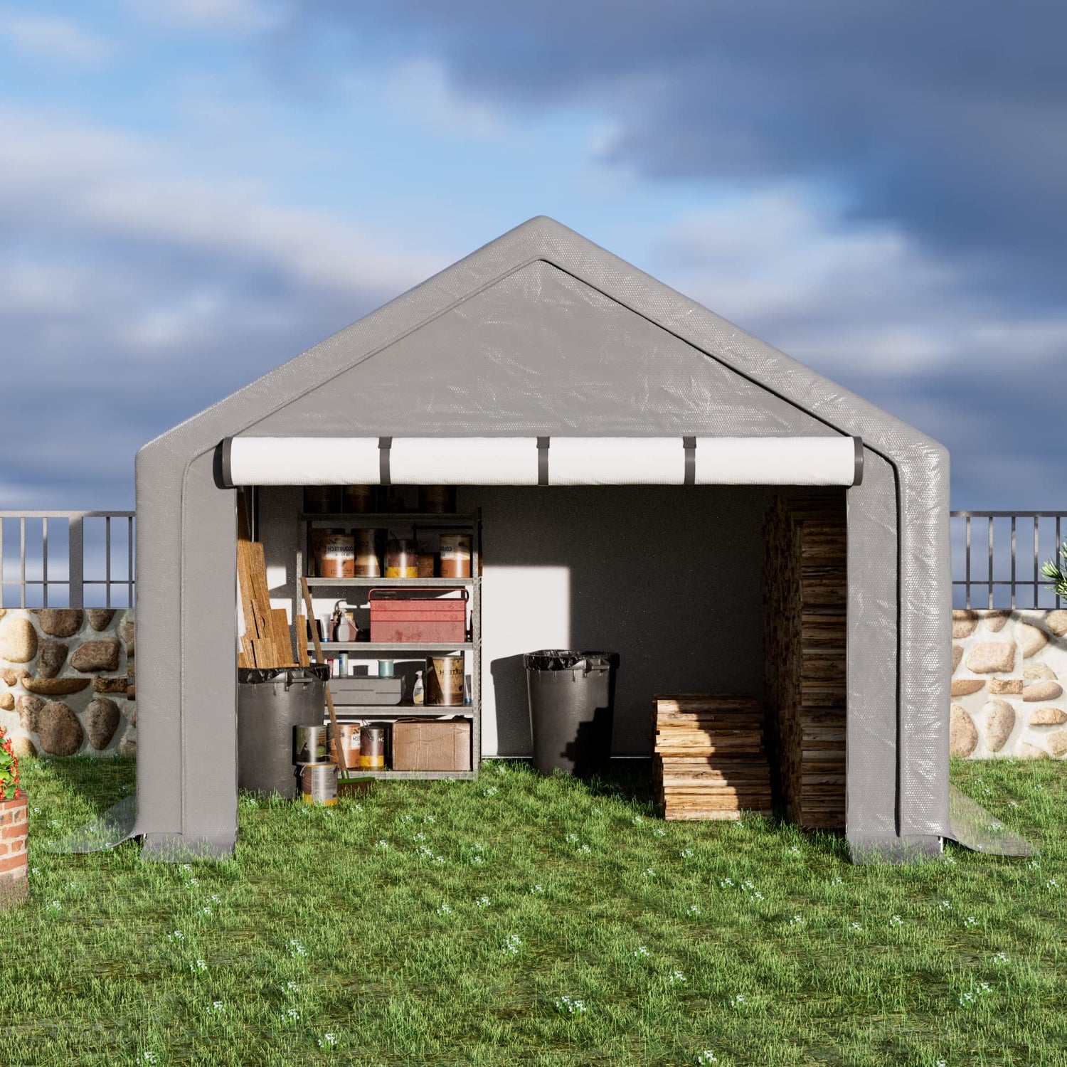 WTRAVEL 10x10 ft Outdoor Storage Shelter with Zipper Door, Portable Garages Shelters, Waterproof and UV Resistant Carport Shed for Bicycle, Motorcycle ATV, Lawn Mowers (10x10 FT)