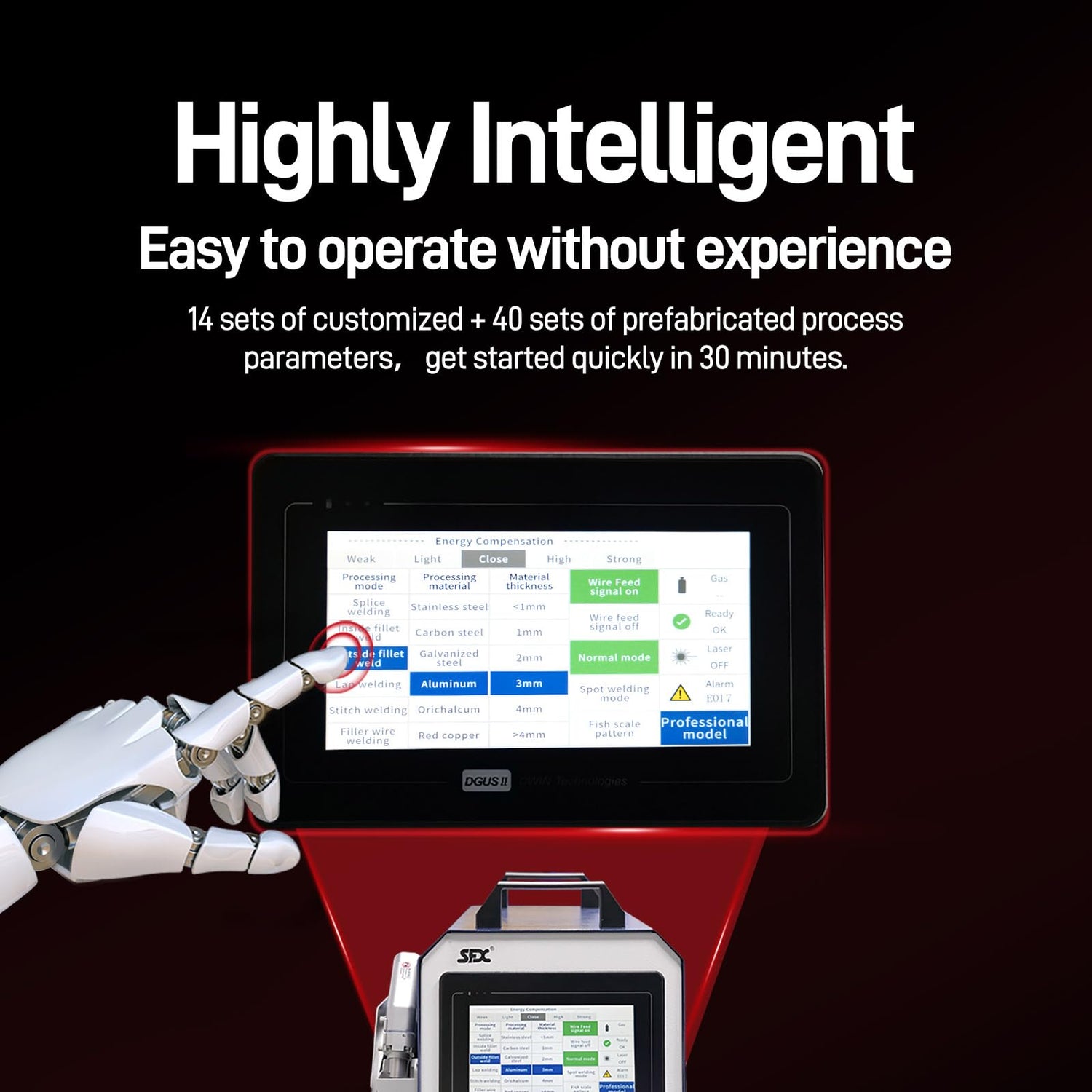 - CONVENIENT TO USE - Equipped with a 7” touch screen for easy setting parameters. The laser cleaning gun is only 1.4 lbs to provide you comfortable grip and excellent welding experience. Besides, this air-cooled laser welder has an easy mode for beginners. We have already inserted 40 parameter settings to help you operate fluently and you only need to choose the type, thickness, speed, and welding method of your workpiece.