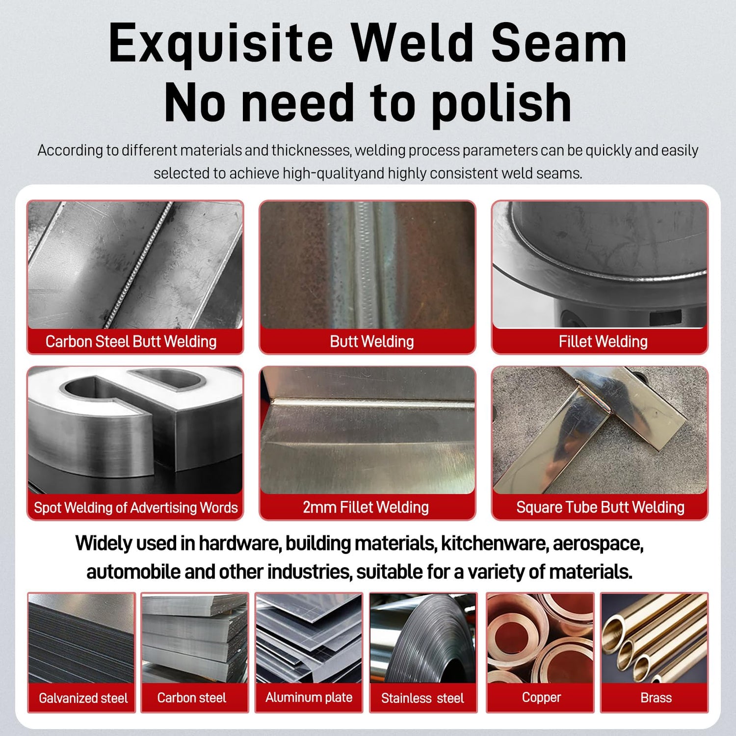 - WIDE APPLICATIONS - The welding speed is 4-10 times faster than traditional fiber laser welding machines. For different materials, the single-side melting depth is as follows: stainless steel: 3mm, carbon steel: 3mm, galvanized sheet: 3mm, aluminum: 3mm, brass: 3mm, copper: 3mm. The 2-in-1 air cooling laser welder can also be used in many fields, such as automotive, electronics, automated manufacturing, shipbuilding, oil and gas, etc.