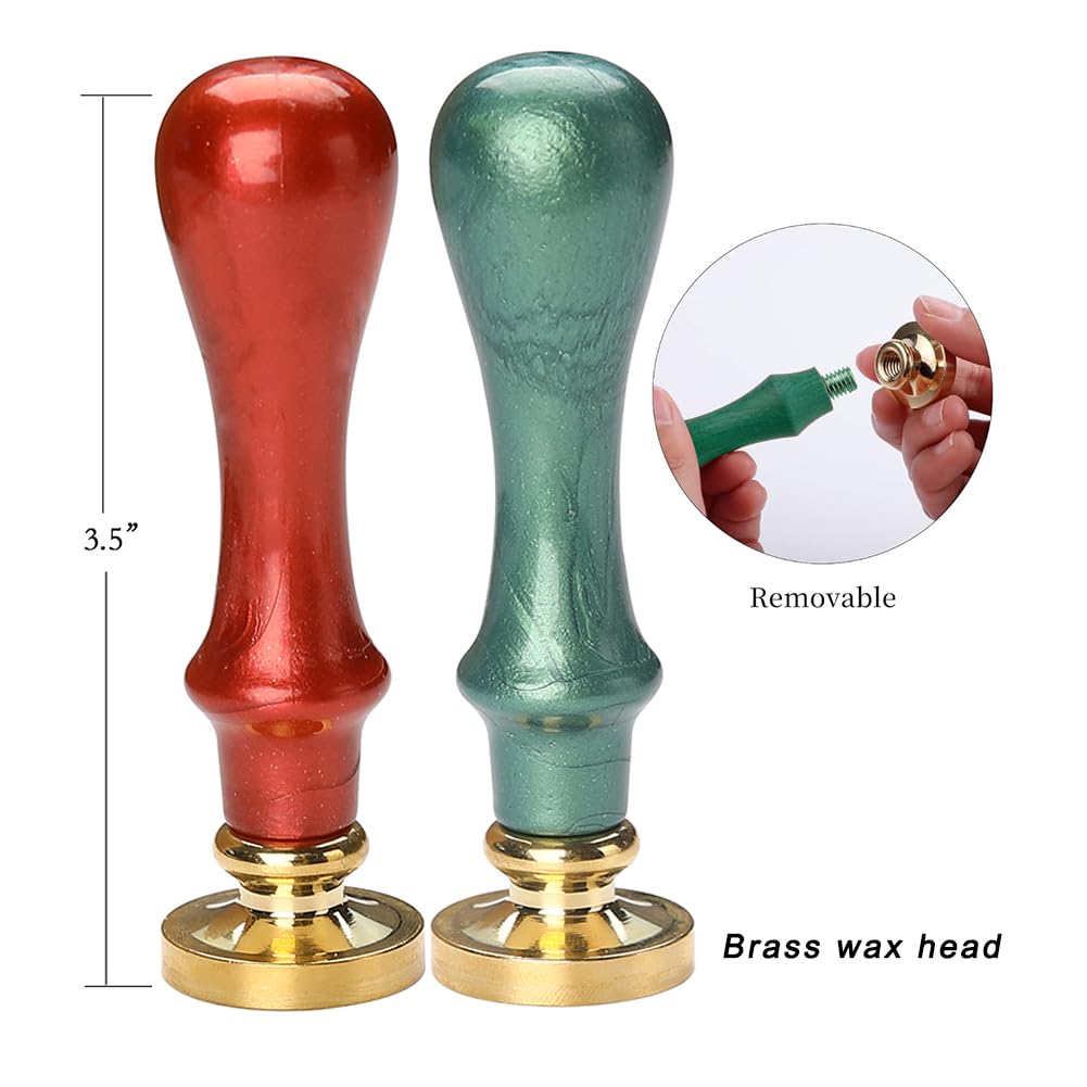 - Merry Christmas Wax Stamp Material: Santa Claus wax seal head is use brass and wax seal handle is use Christmas green and red color. The Christmas sealing wax head is removable. It's easy install and exchange to different wax stamp head