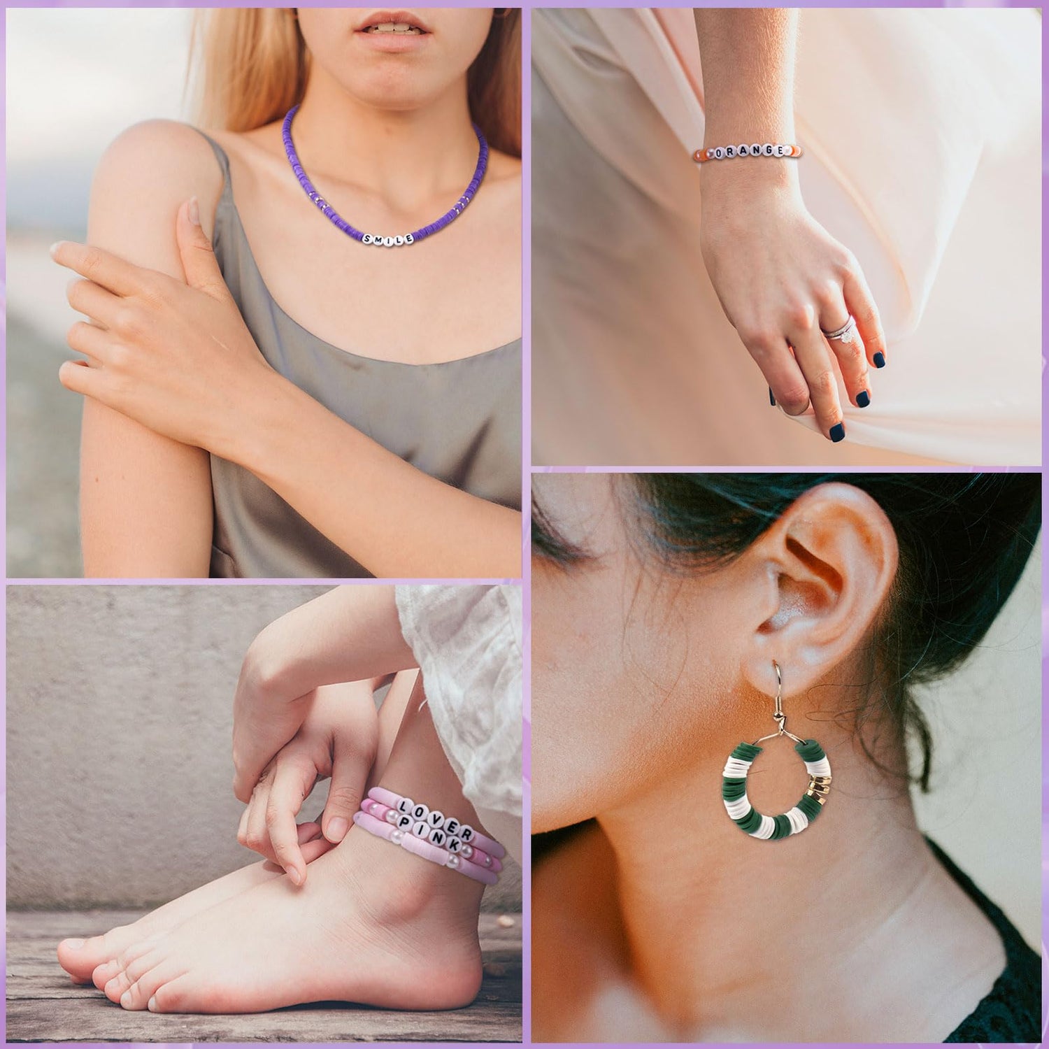 - 🧵Complete Friendship Bracelet Kit: You will receive 4920 clay beads, 910 A to Z letter beads,40 number beads, 40 metal flat spacer beads, 40 pearl beads, 6 earring pieces, 60 3mm round spacer beads, and various small accessories. Our friendship bracelet beads are an all-in-one solution for creating bracelets, necklaces, earrings, bag chains, and more. No need to purchase anything extra.