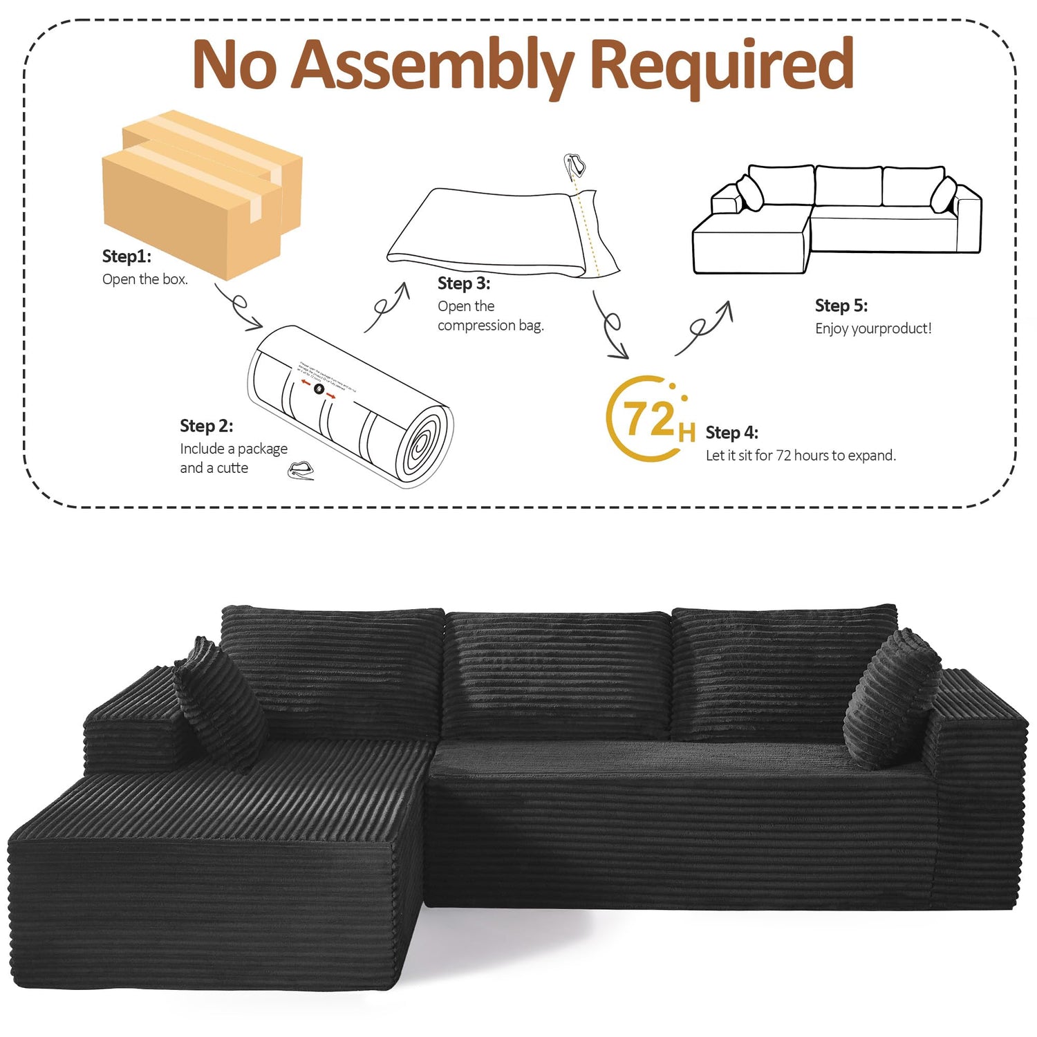 - No Assembly Required:Say goodbye to complicated setup—this modular couch comes fully compressed and packaged in two separate boxes. Just unbox, let it expand for up to 72 hours, and gently pat to fluff. No tools, no hassle,comfort is just moments away.