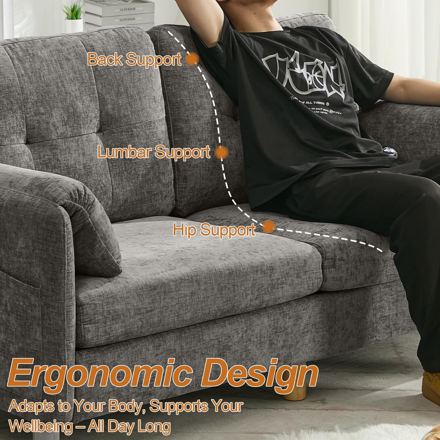 - Built to Last: Durability meets elegance with our loveseat. It features a robust wooden frame that can support up to 300 pounds, ensuring stability and longevity. Reinforced stitching and premium chenille fabric resist pilling and fading, ensuring years of stylish comfort. It's perfect for active families or frequent entertainers, providing a reliable and elegant addition to your home that can withstand the test of time.