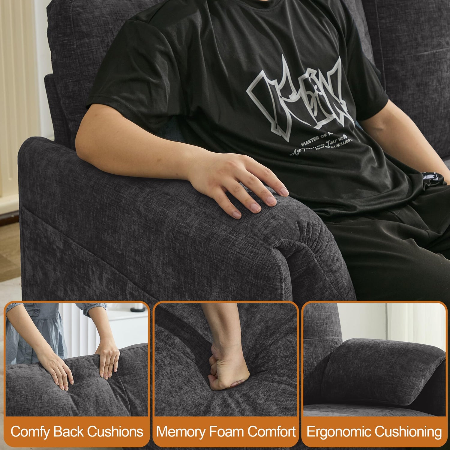 - Ultimate Two-Seater Comfort: Our loveseat is designed for ultimate comfort, perfect for two. The luxurious chenille fabric feels incredibly soft against your skin, while the premium sponge filling inside ensures that every sit is a perfect sink - in experience. Whether you're lounging solo or cuddling up, this two-seater sofa cradles you in coziness. The pillow - topped armrests add an extra layer of support, making it the ideal spot to unwind after a long day.