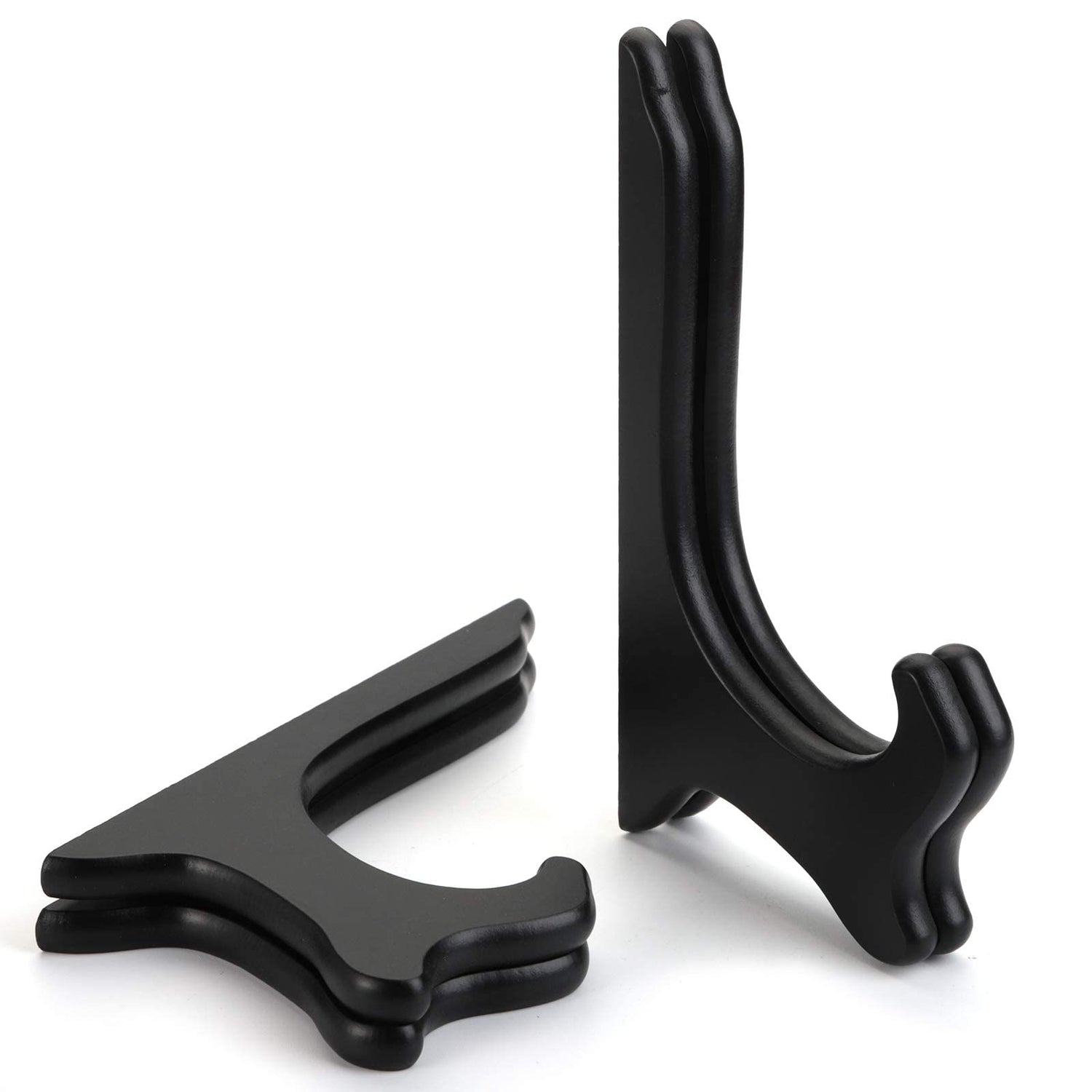 WUWEOT 6 Pack 7" Wooden Display Stand, Black Wood Easel Plate Holders to Display Pictures, Cook Books, Art, Dish, Certificates and More, Ideal Wedding, Home, Birthday, Party, Table Decorations