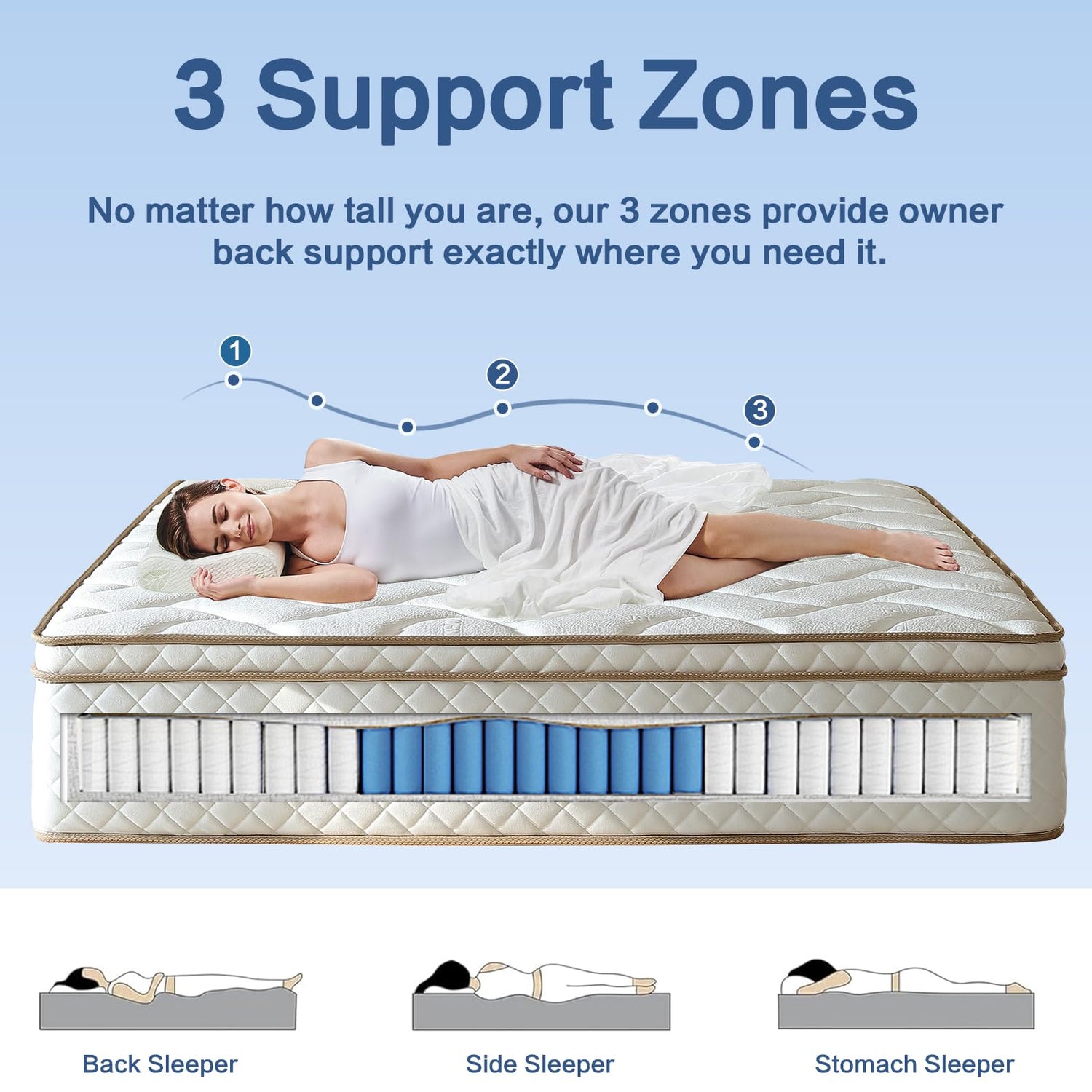 - ✅[Motion Isolation for Undisturbed Sleep]: Thanks to the individually pocketed springs, this hybrid mattress queen minimizes motion transfer, allowing both you and your partner to sleep soundly without disturbing each other. Independent coils absorb 95% of partner movements (lab-tested). Finally enjoy undisturbed sleep with restless sleepers/kids/pets.Enjoy a quiet, restful night with minimal interference.
