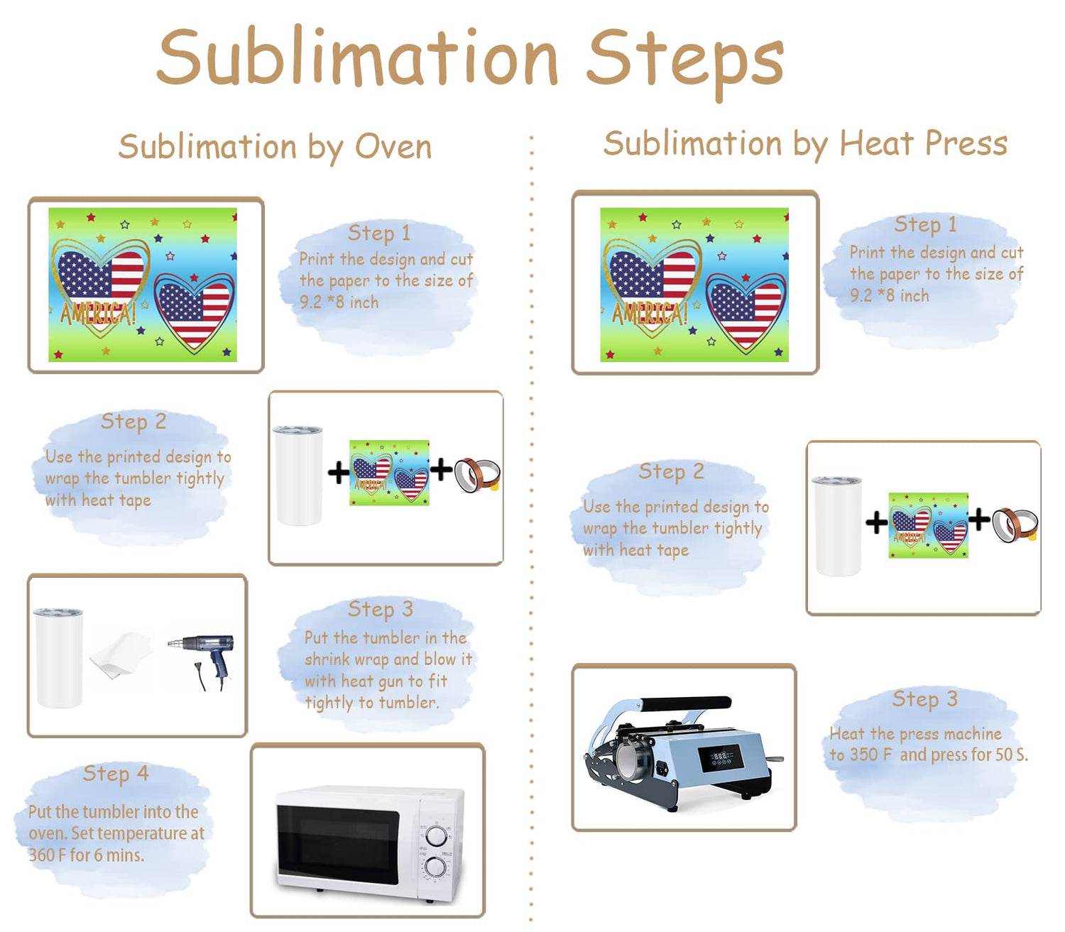 Extra bonus-The 15 oz sublimation tumbler comes with 8 shrink film, 8 straws and 8 straw brushes.