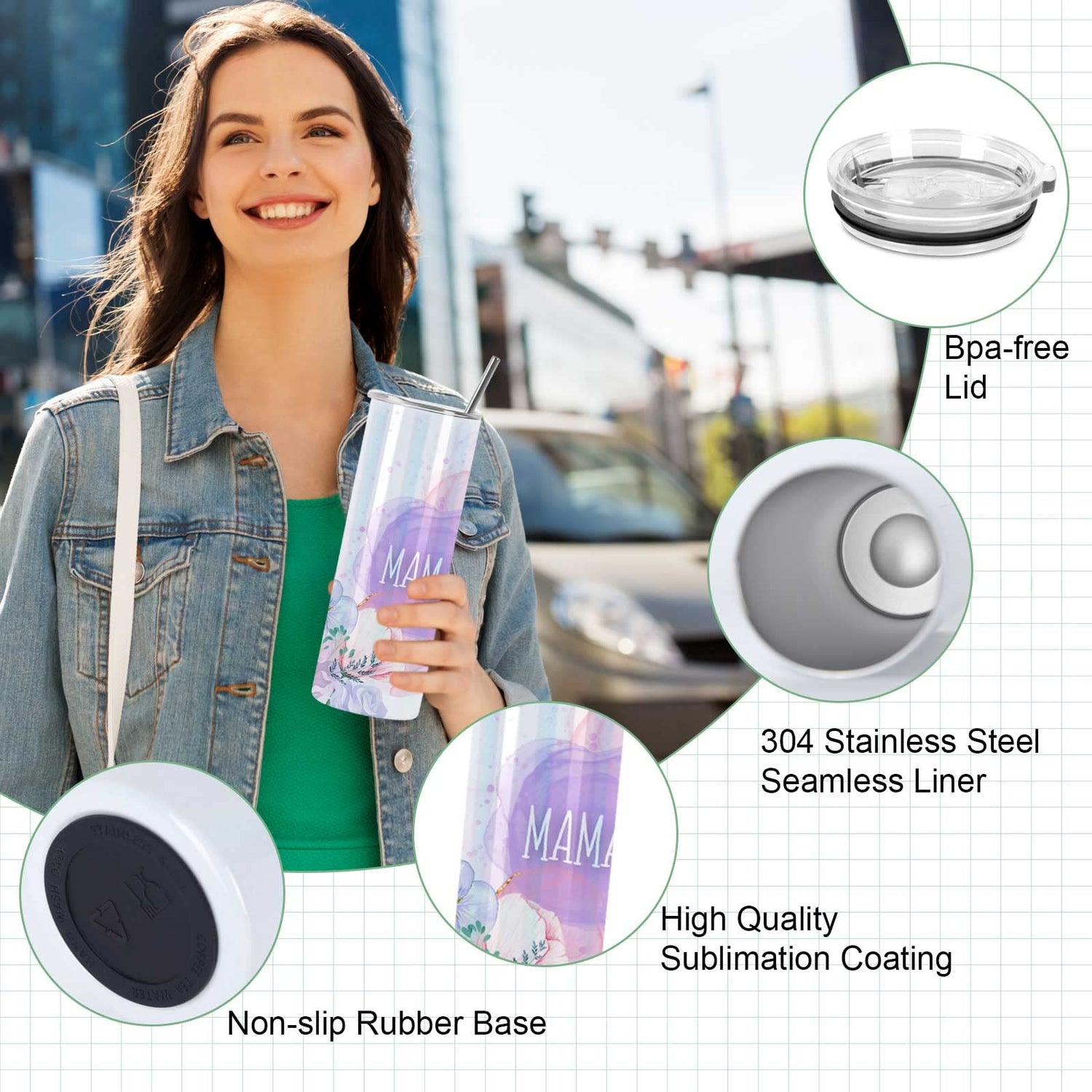 Our glitter sublimation tumblers 20 oz skinny straight with lid and straw, made of 304 food grade stainless steel, is dutable and will not rust.