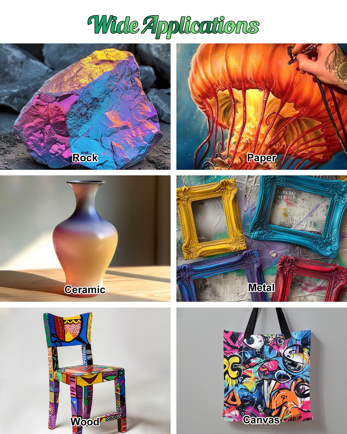 - Wide Application: Our acrylic airbrush paint is suitable for artists, beginners, and students alike. It delivers permanent results on various surfaces, including paper, shoes, canvas, wood, fabric, leather, plastic, metal, ceramics, models, and more. Explore endless possibilities with our versatile airbrush paint set.