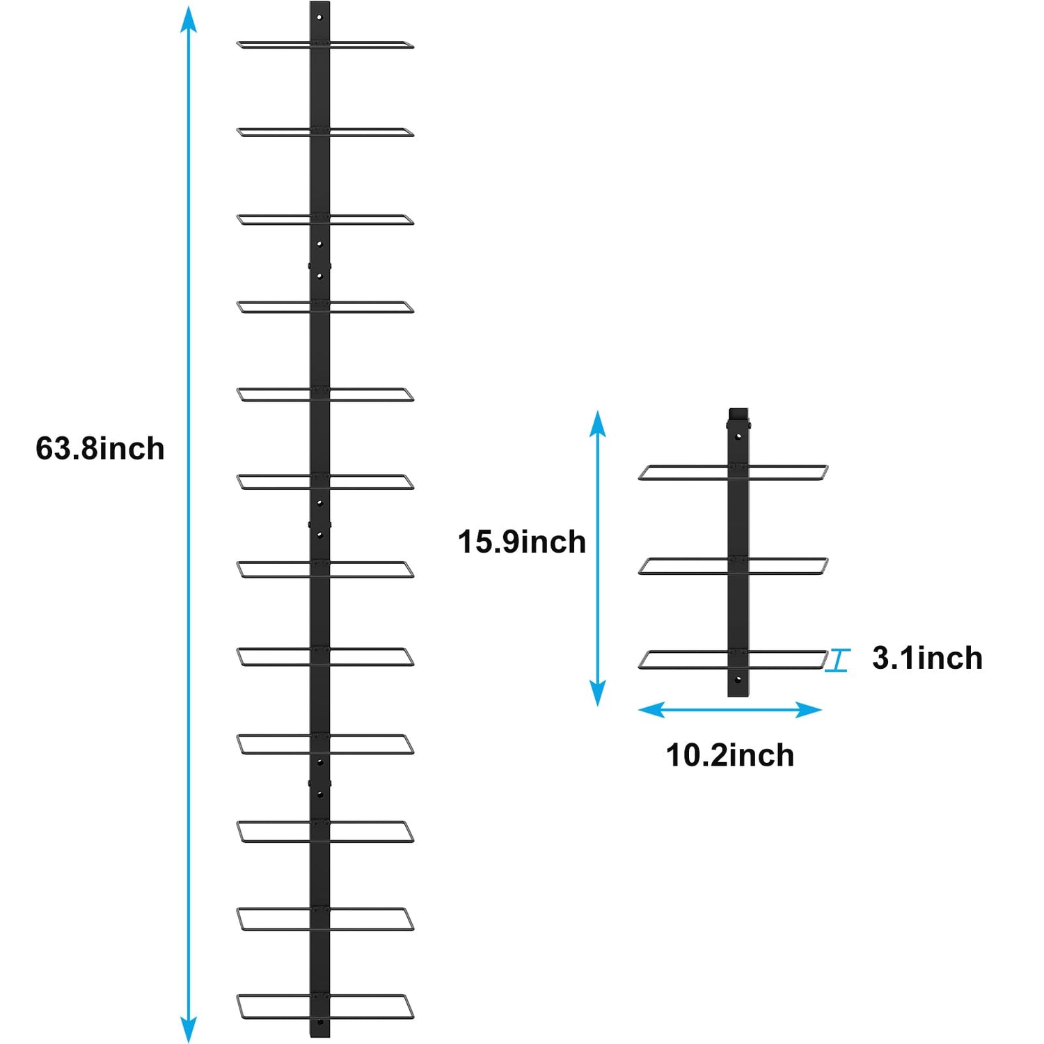 - Functional & Space Saving: This wall mounted wine rack is perfect for fordining rooms, bars, counter space, wine cellar, wine shops cafe, restaurants, etc. Wall mount design makes full use of your wall space. Four units together:10.6 ×3.1 ×63.8 inch/( L x W x H), One unit: 10.6 × 3.1× 15.9 inch/( L x W x H). Product Weight: 4.4 Pounds.