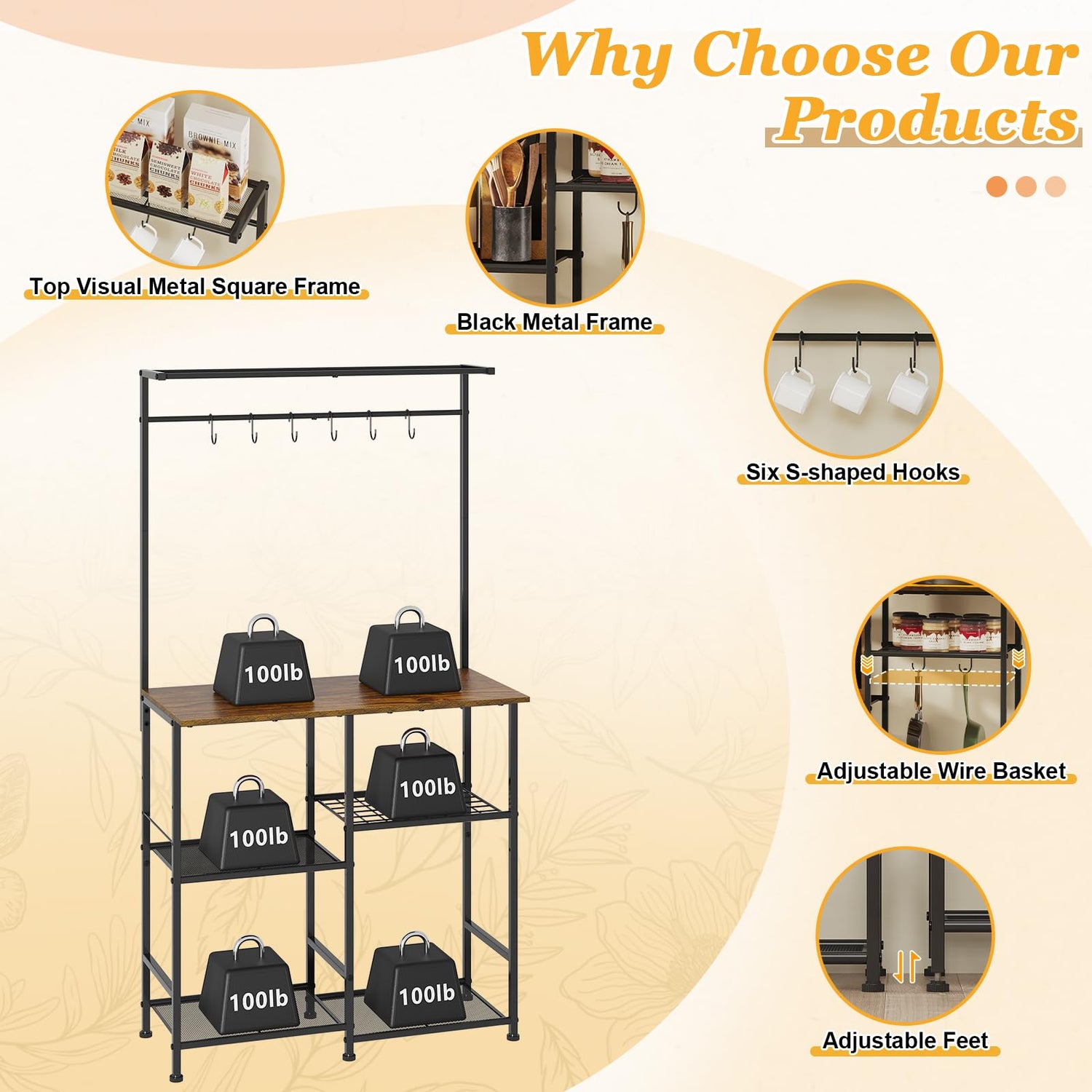 - [Multifunctional Kitchen Shelf] The bakers Rack is not limited to the kitchen. It can be used not only as a bakers rack, but also as a coffee bar, microwave stand,plant rack, snack rack,and kitchen storage