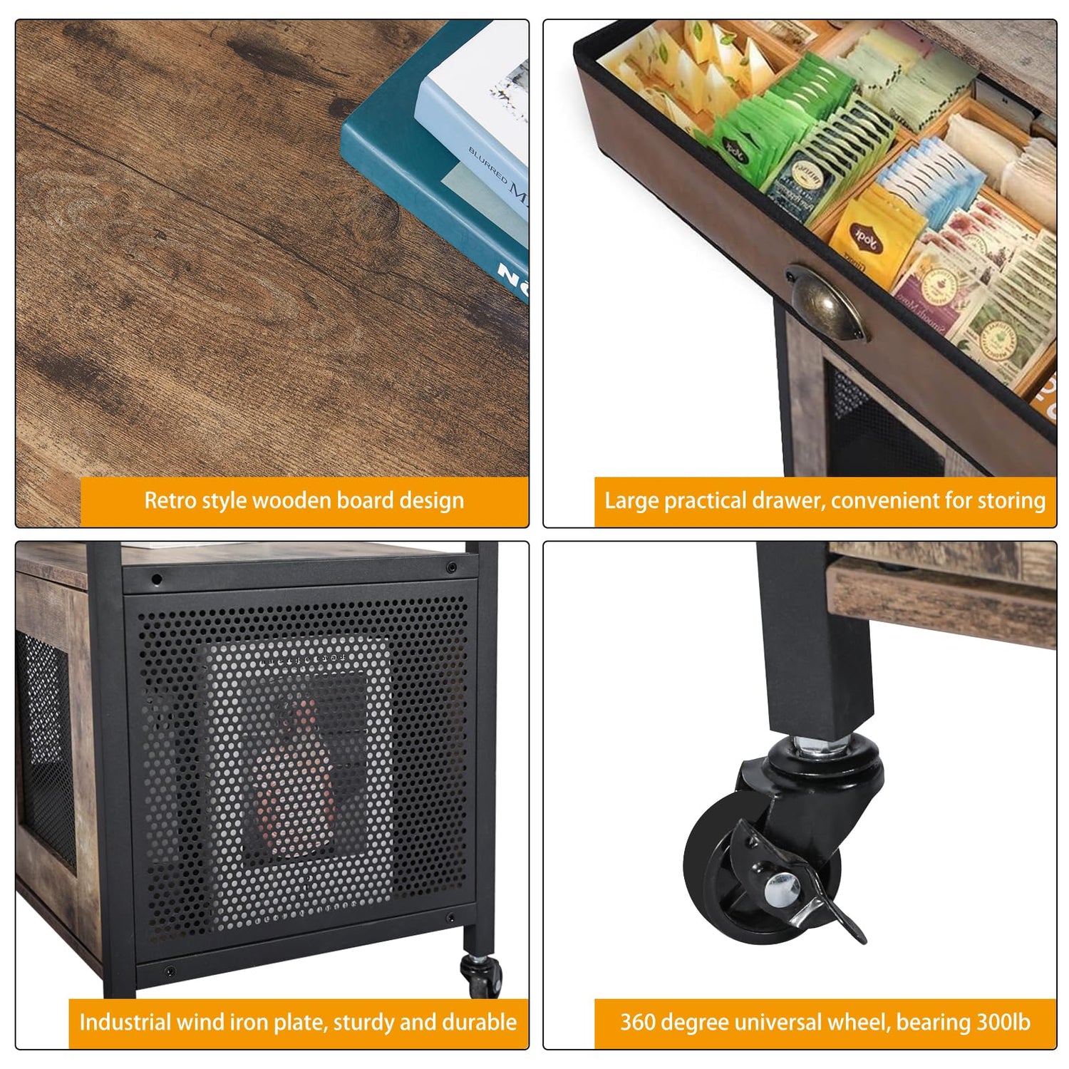 X-cosrack Coffee Bar Cabinet,3 Tiers Kitchen Coffee Cart with Drawer for The Home, Movable Farmhouse Coffee Station Table on Wheels for Living Room, Entryway, Dining Room, Kitchen