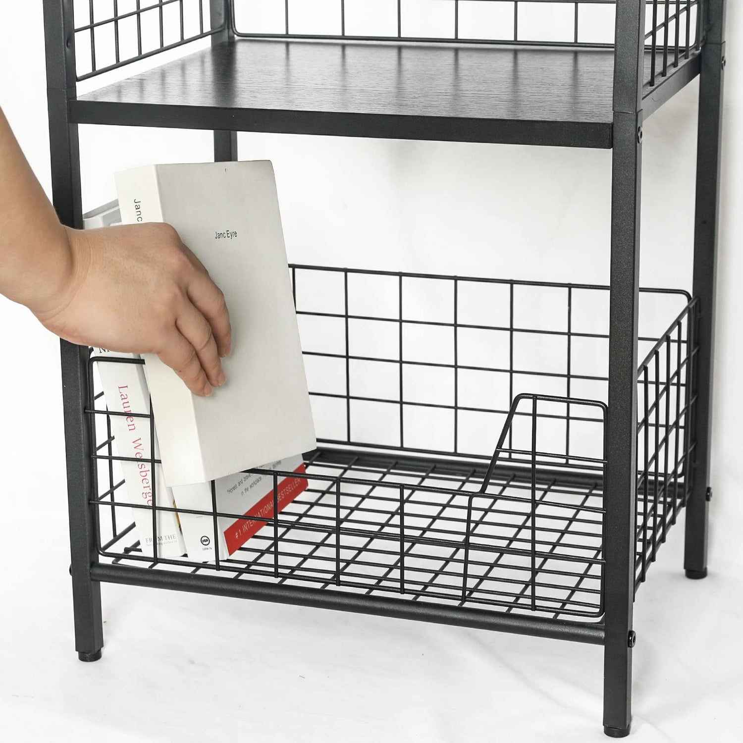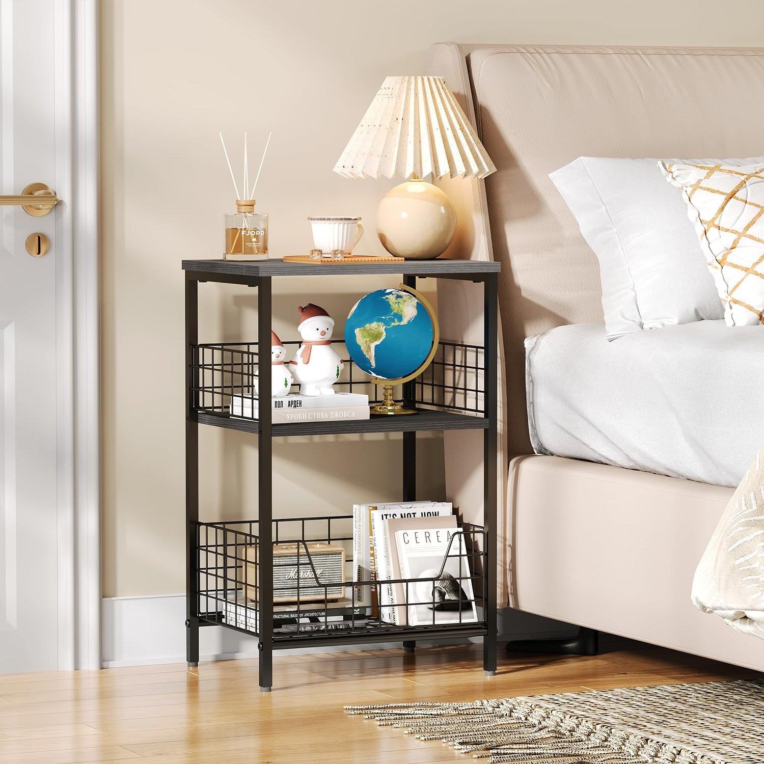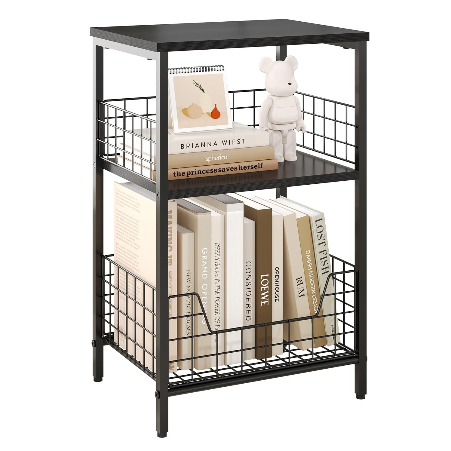 - 【More Practical】3-Tier end table for additional storage meet all of your different needs.The top and middle open smooth shelf gives sufficient storage place for storing and displaying. And the bottom wide U-shape iron wire basket for easy access and can storage snacks,cans or other stuff you want to put inside