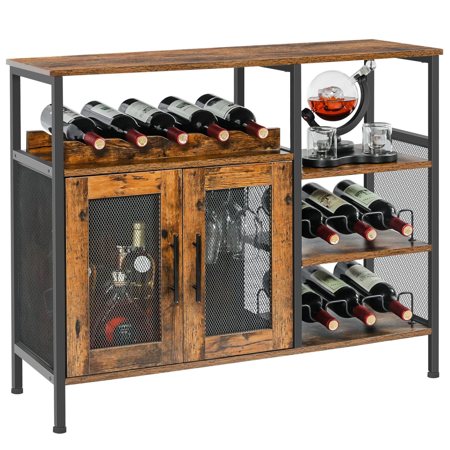 X-cosrack Wine Bar Rack Cabinet with Detachable Wine Rack, Coffee Bar Cabinet with Glass Holder, Small Sideboard and Buffet Cabinet with Mesh Door, Rustic Brown, Large