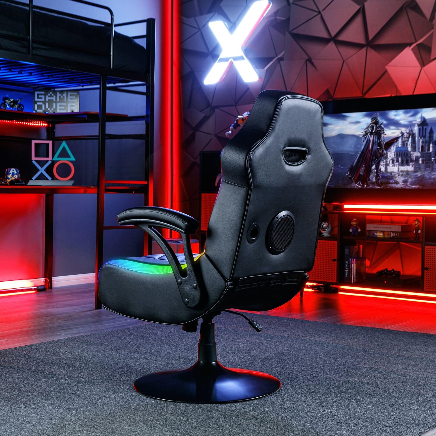 X Rocker Prism RGB LED Lounging Video Gaming Pedestal Chair with Armrests, Wireless Bluetooth Audio, Foldable, Vegan Leather, Amazon Exclusive, Black