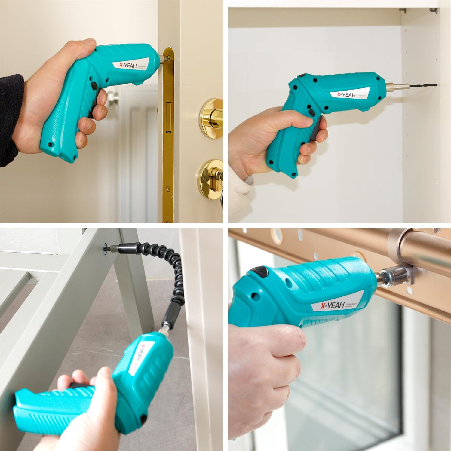 X-YEAH Small Electric Screwdriver, 3.7V Rechargeable Cordless Screwdriver with LED Light, Electric Screwdriver Kit Includes 45pcs Bit Set, USB Charging Cable, Carrying Case