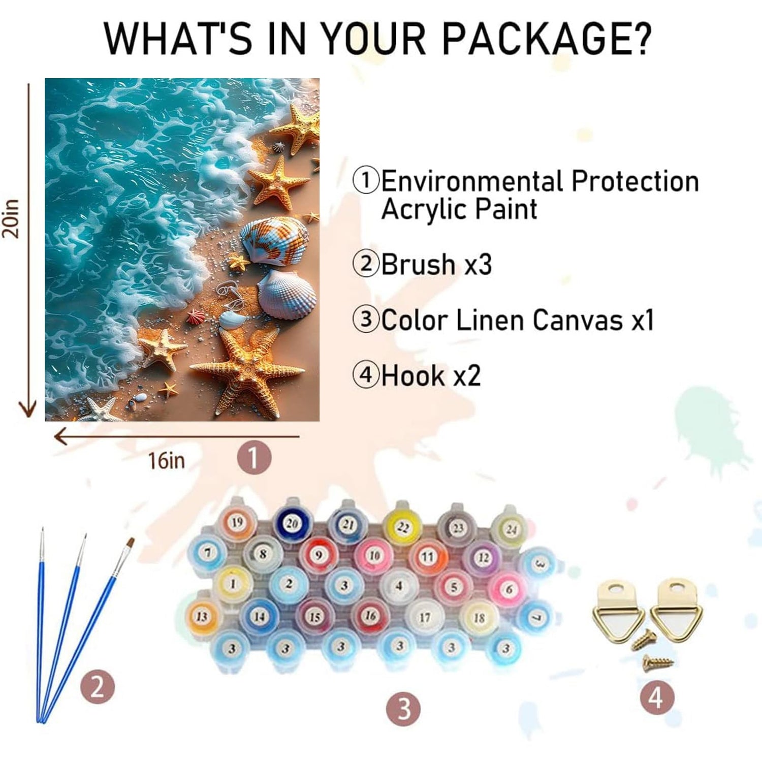 xackcme Beach Paint by Numbers for Adults - Starfish Paint by Number on Canvas Without Frame, DIY Seashell Oil Painting for Gift Home Wall Decor (16x20 inch)