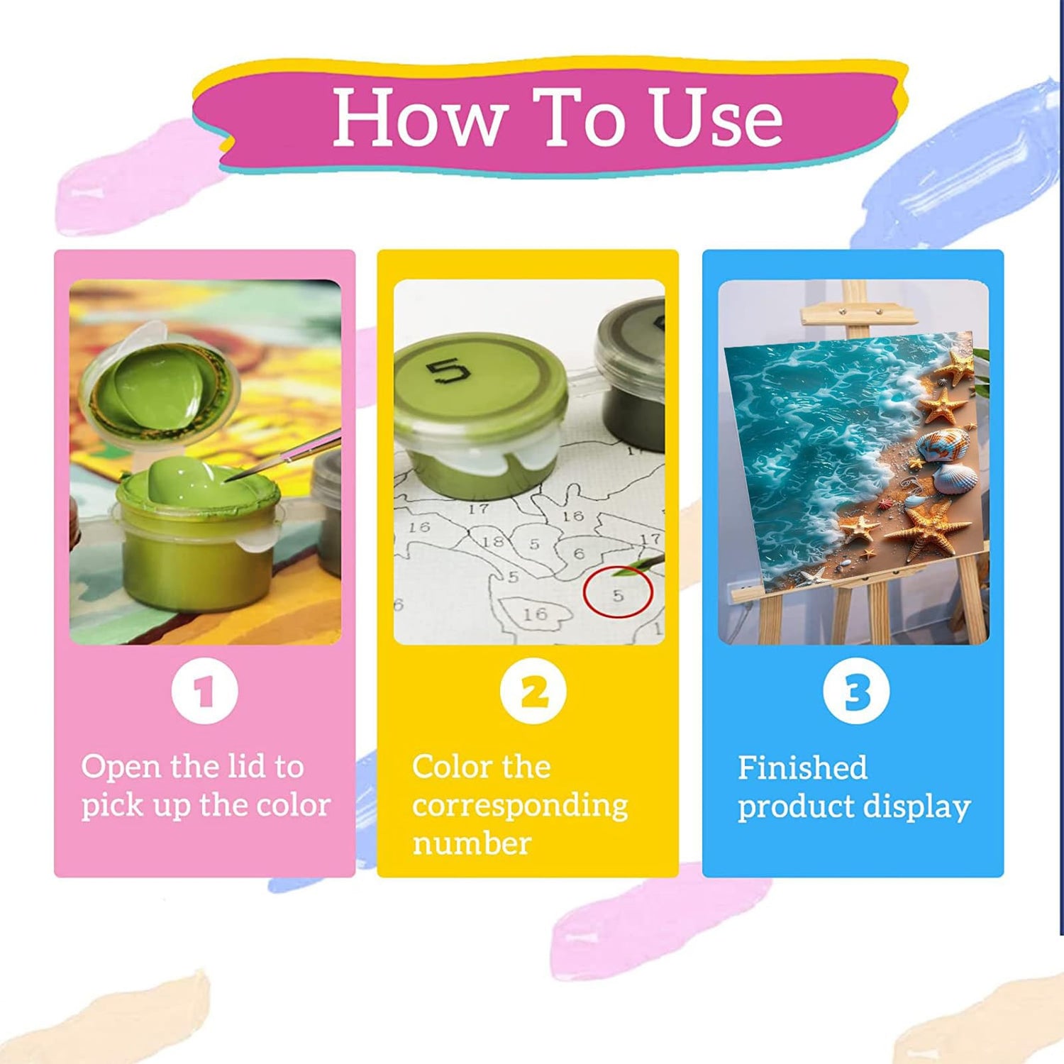 - 【How to Do】 You need match the numbers of the paint and the figures on the canvas to fill in the paint