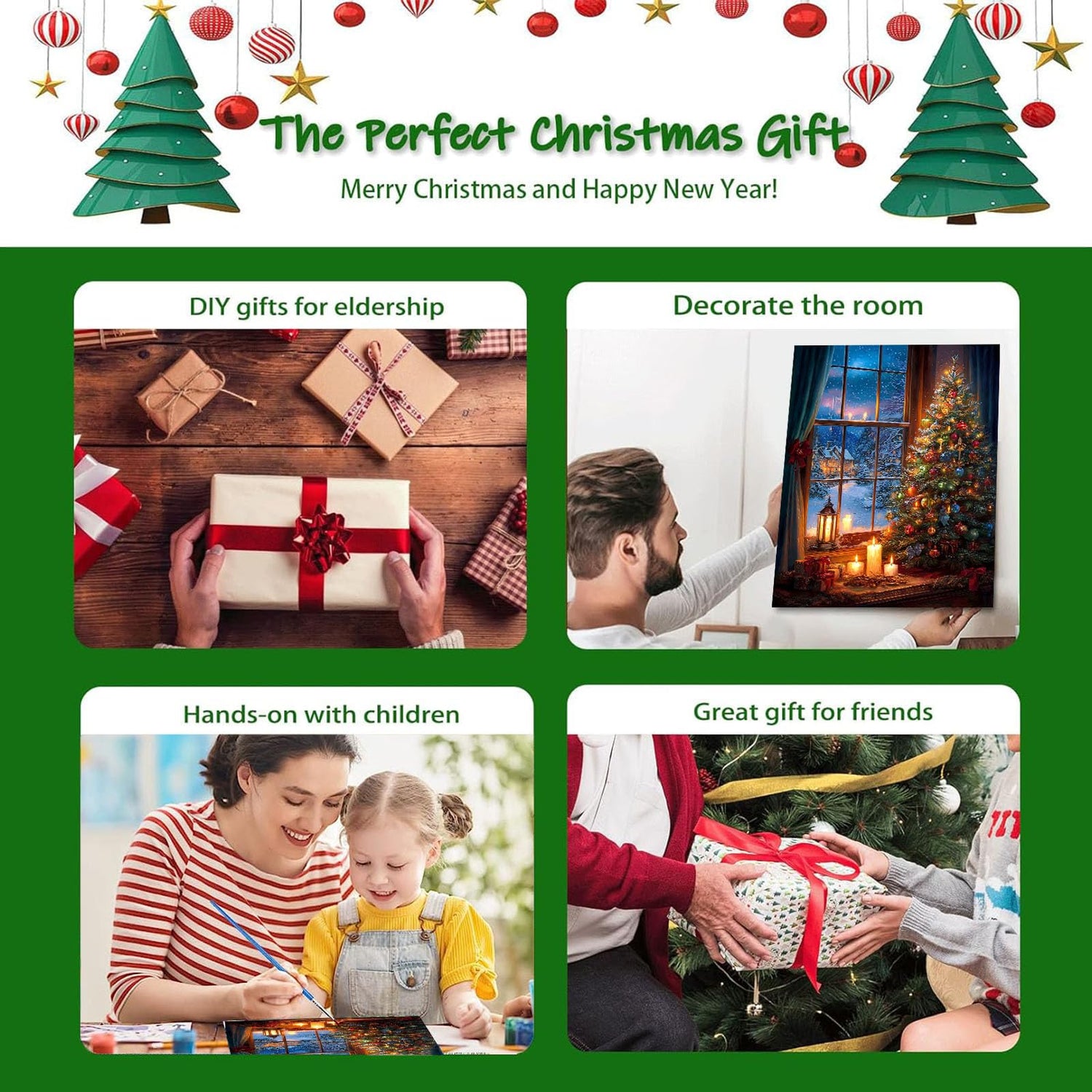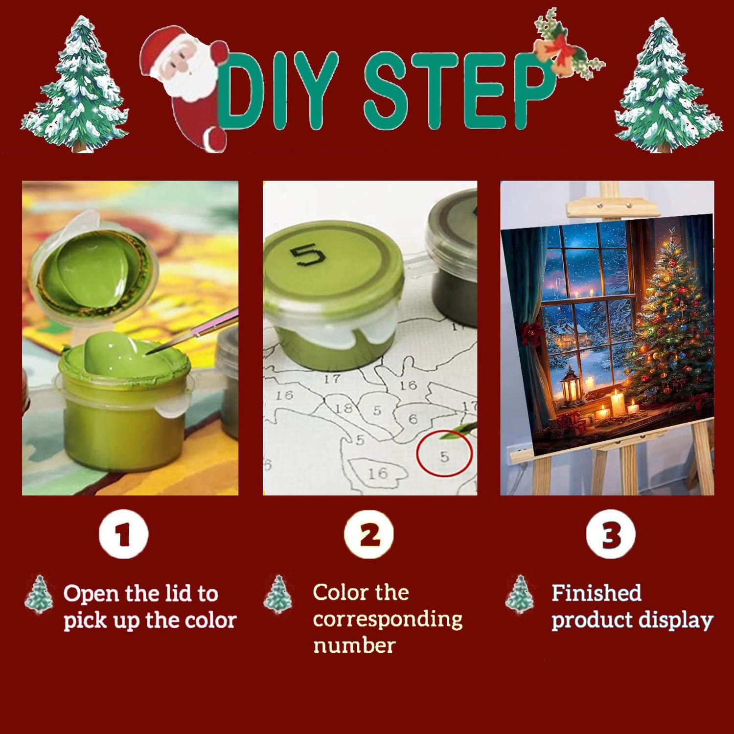 xackcme Christmas Tree Paint by Numbers for Adults, Christmas Paint by Number on Canvas Without Frame, DIY Xmas Oil Painting for Gift Home Wall Decor (16x20 inch)