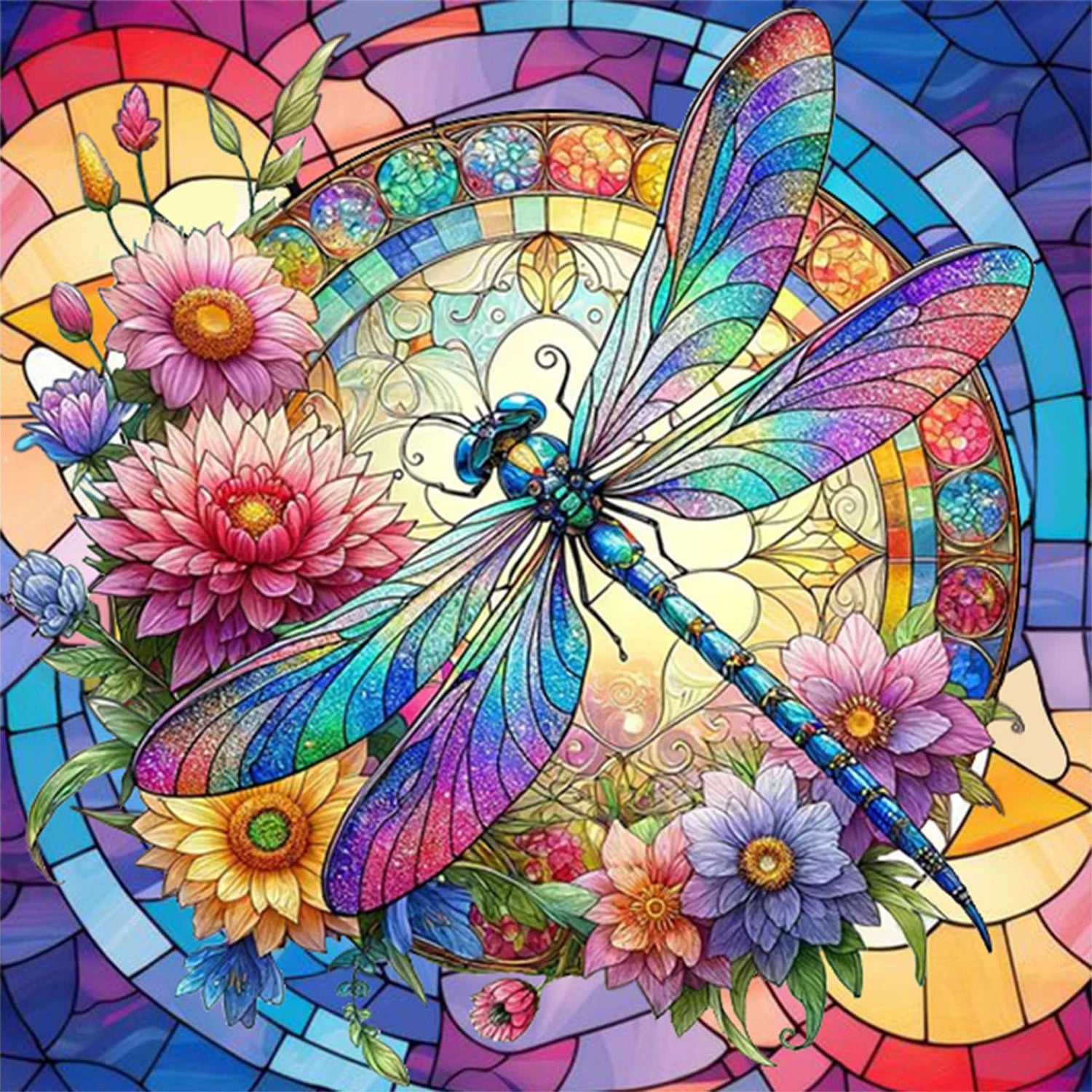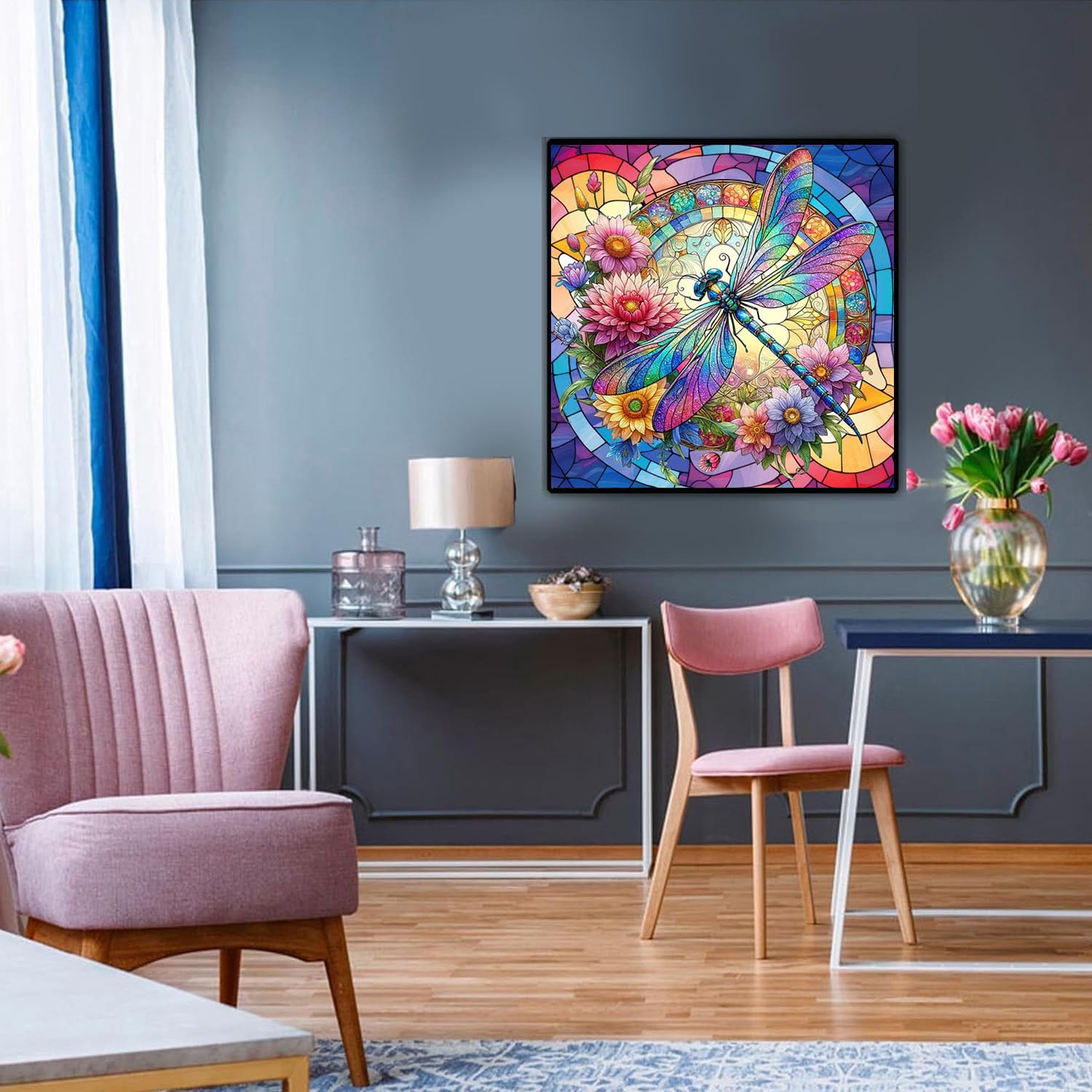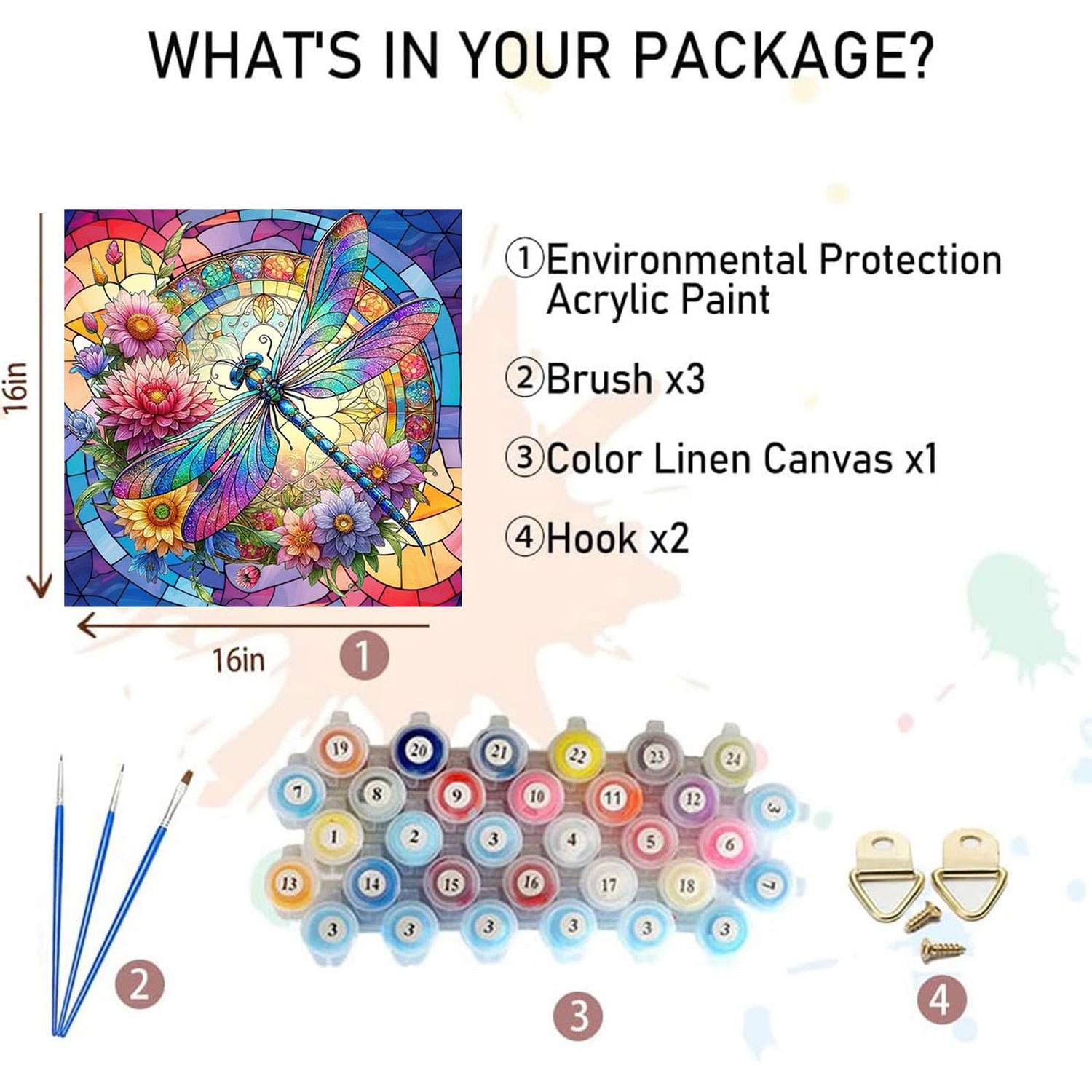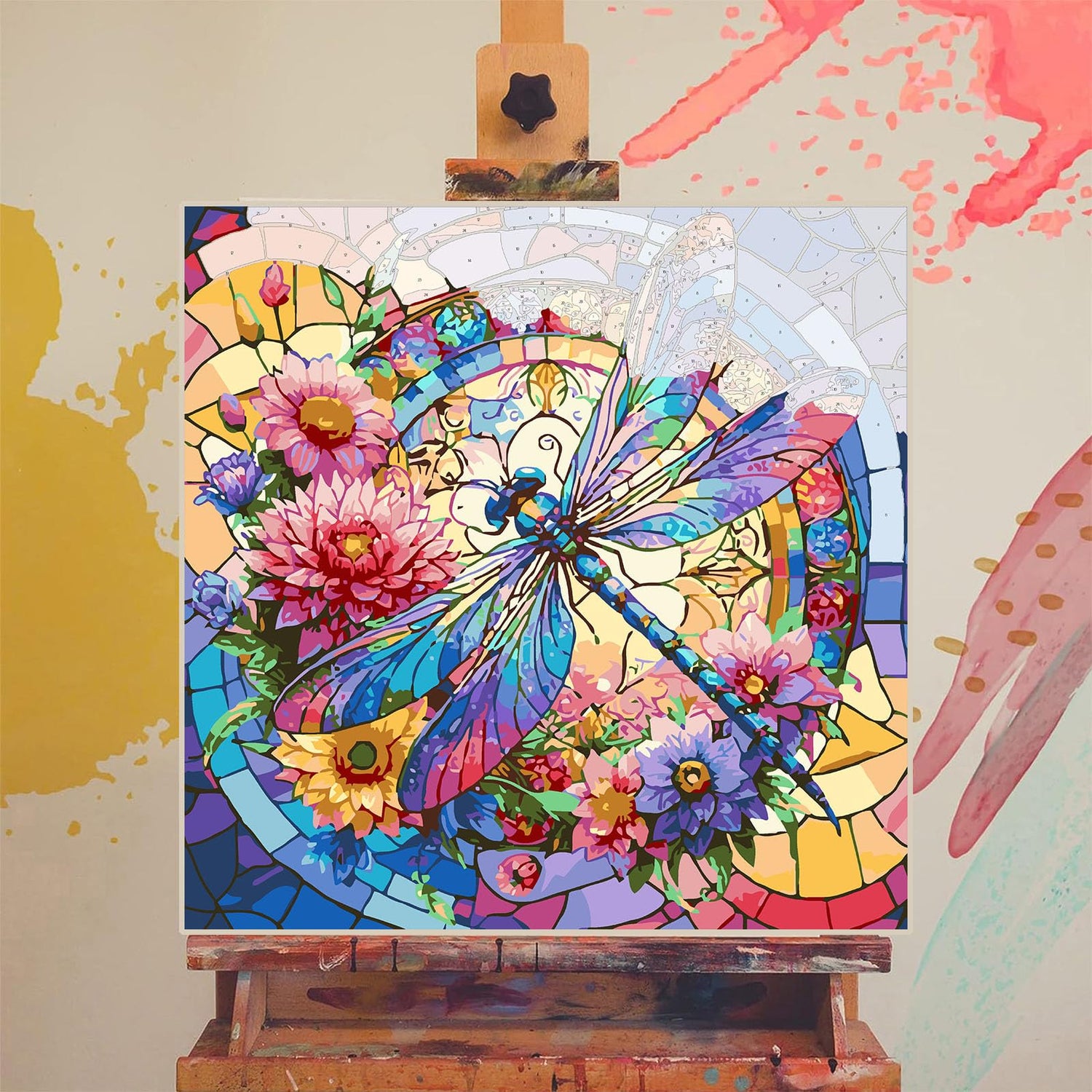 xackcme Dragonfly Paint by Numbers for Adults - Stained Glass Paint by Number on Canvas Without Frame, DIY Oil Painting for Gift Home Wall Decor (16x16 inch)