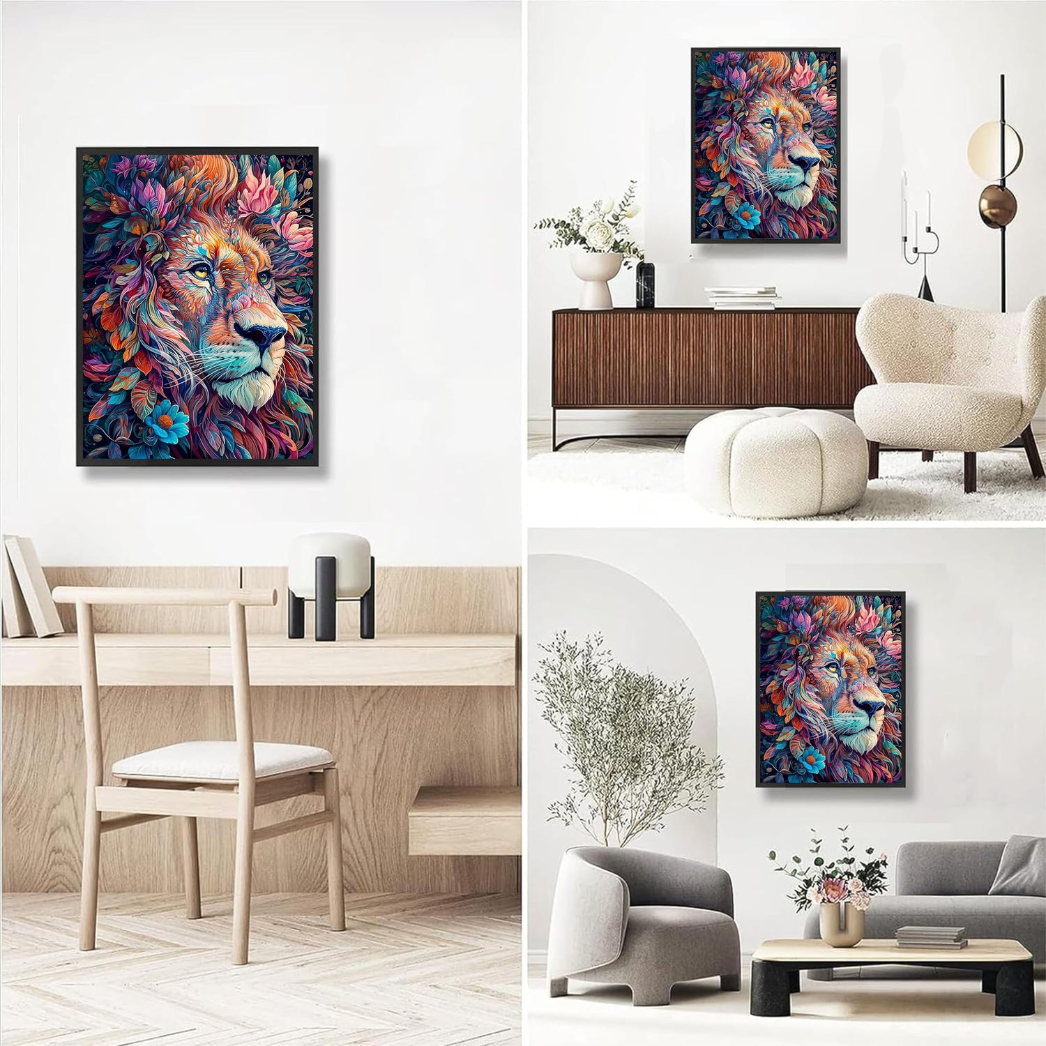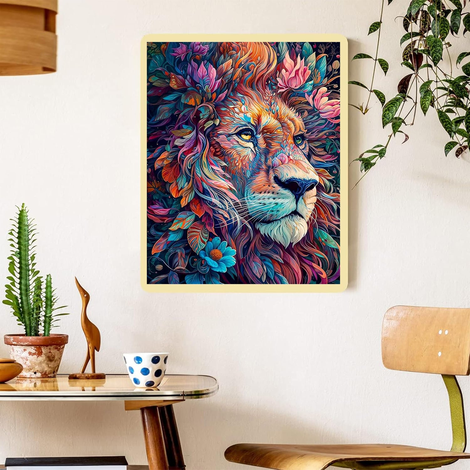 xackcme Lion Paint by Numbers for Adults with Framed Canvas-with Wooden Easel,Paint by Number on Canvas Animals,DIY Acrylic Oil Painting Kits with Brushes Nice Gift Box for Home Wall Decor(12x16inch)