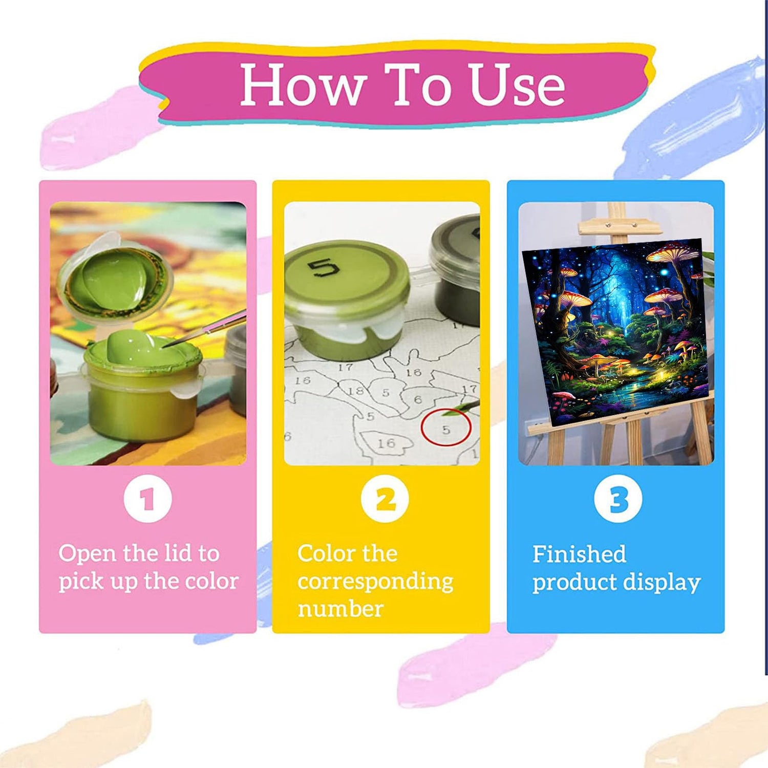 - 【How to Do】 You need match the numbers of the paint and the figures on the canvas to fill in the paint