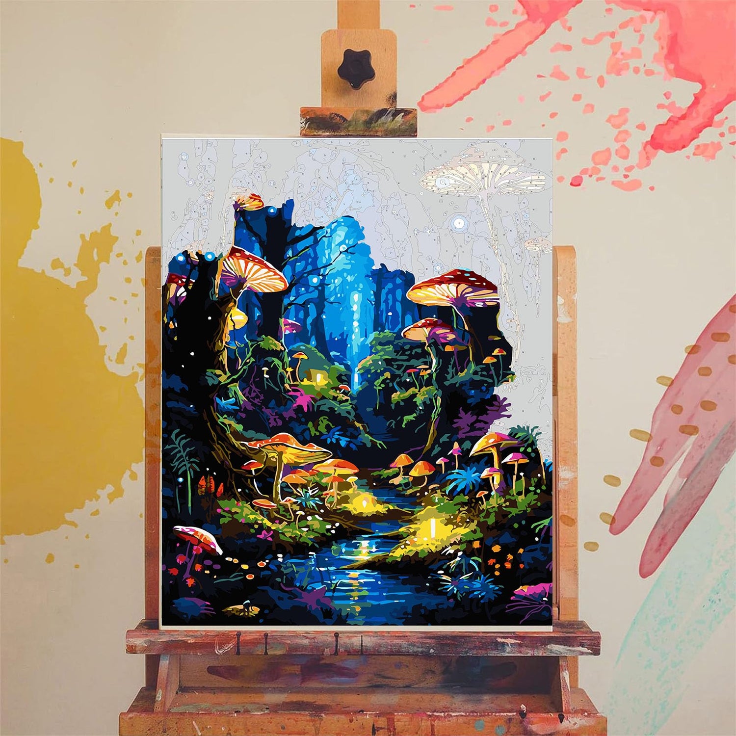 xackcme Mushroom Paint by Numbers for Adults - Forest Paint by Number on Canvas Without Frame, DIY Oil Painting for Gift Home Wall Decor (16x20 inch)
