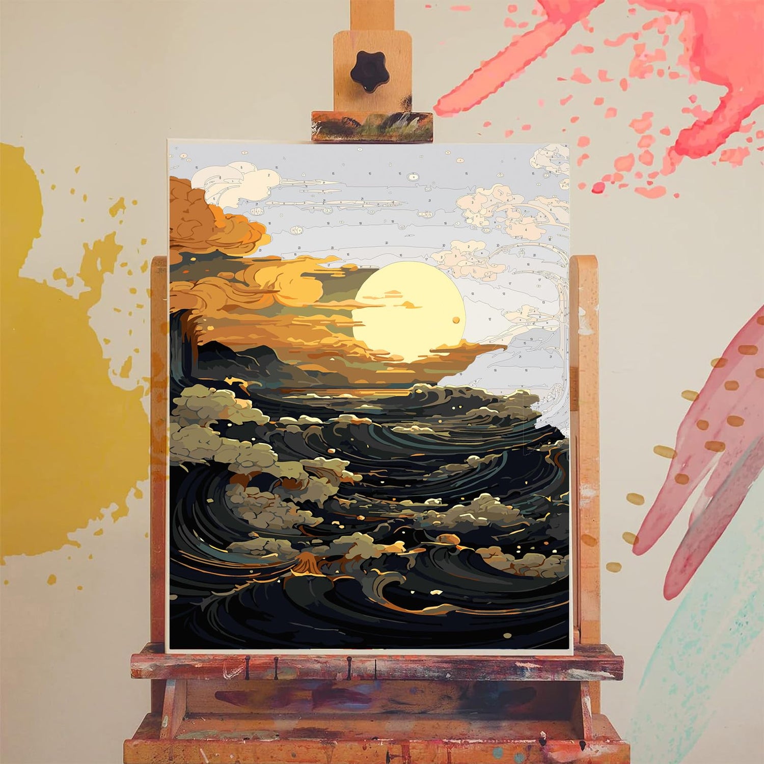 xackcme Ocean Wave Paint by Numbers for Adults - Landscapes Paint by Number on Canvas Without Frame, DIY Scenery Oil Painting for Gift Home Wall Decor (16x20 inch)