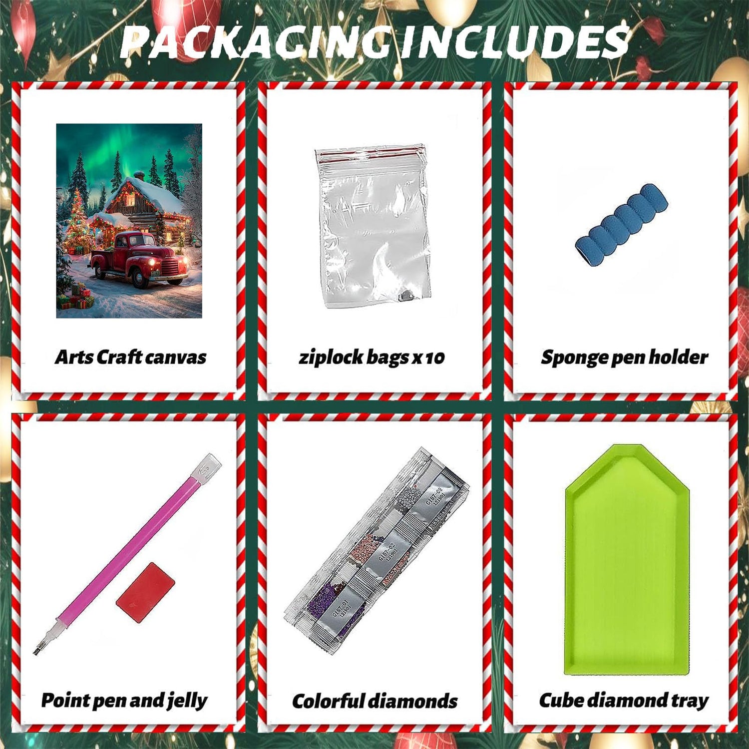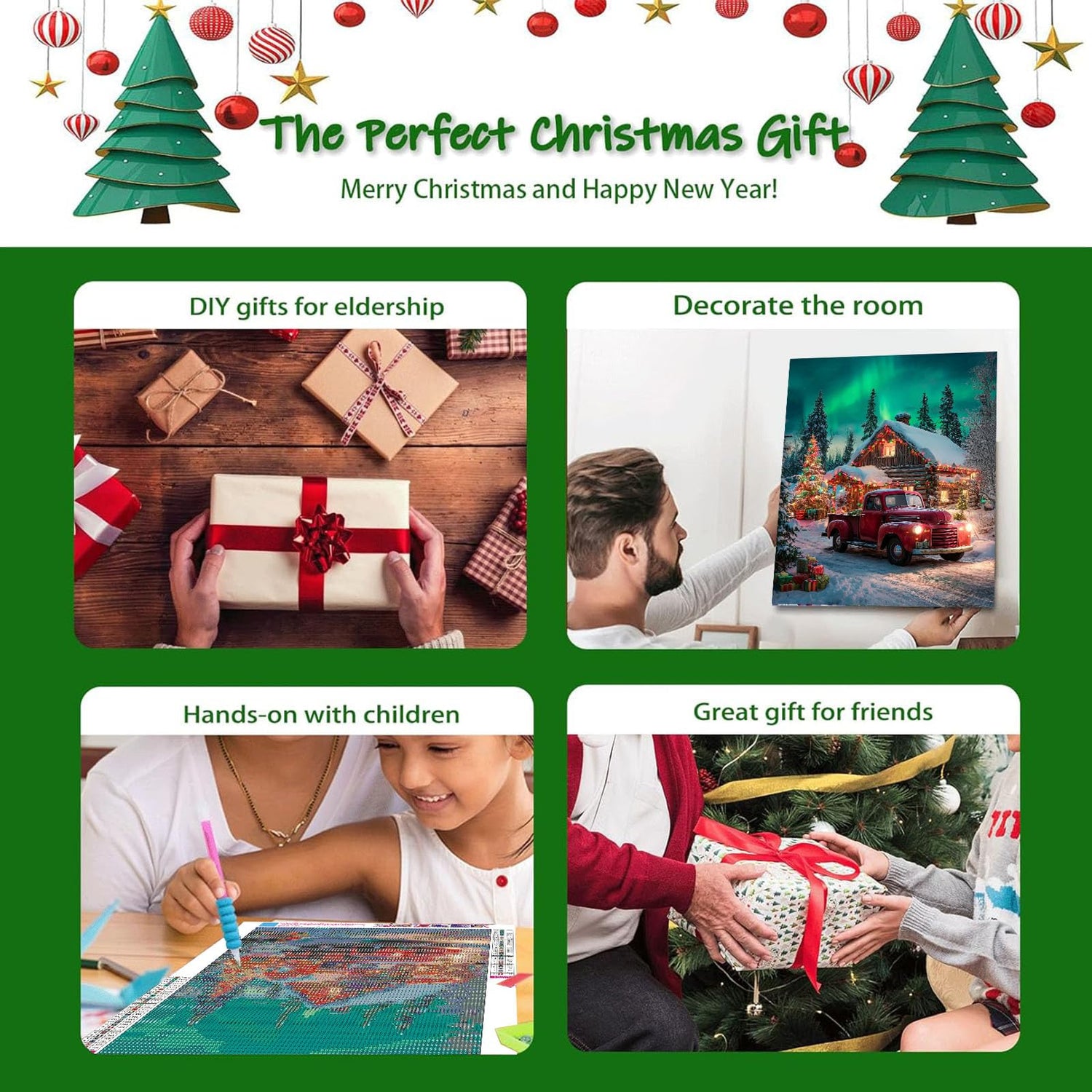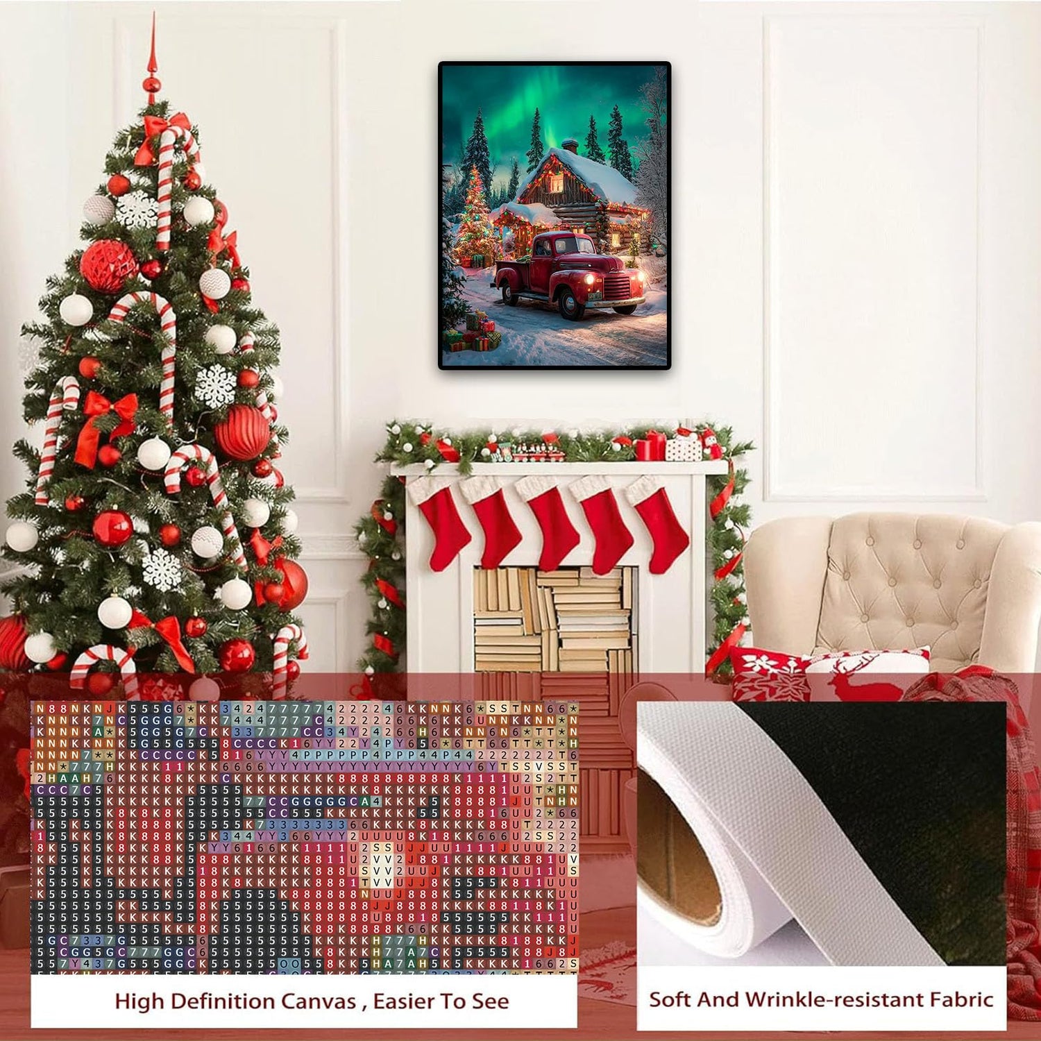 xackcme Red Truck Diamond Painting Kits for Adults, Christmas Diamond Art Kits for Adults, Round 5D Aurora Gem Art Kit for Adult DIY Crafts Kit Gift Home Wall Decor Gifts (16x12 inch)