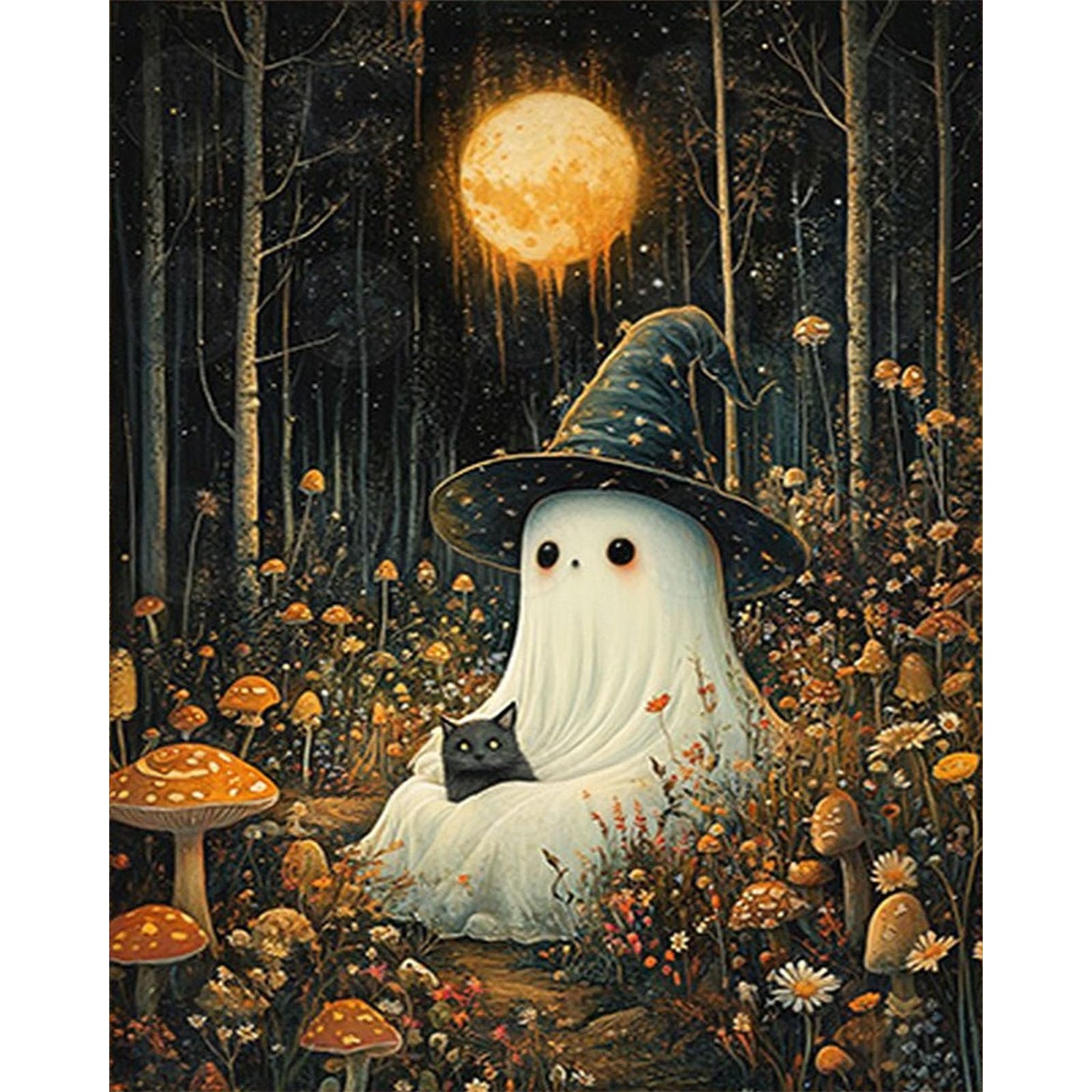 xackcme Spooky Paint by Numbers for Adults, Halloween Paint by Number on Canvas Without Frame, DIY Ghost Oil Painting for Gift Home Wall Decor (16x20 inch)