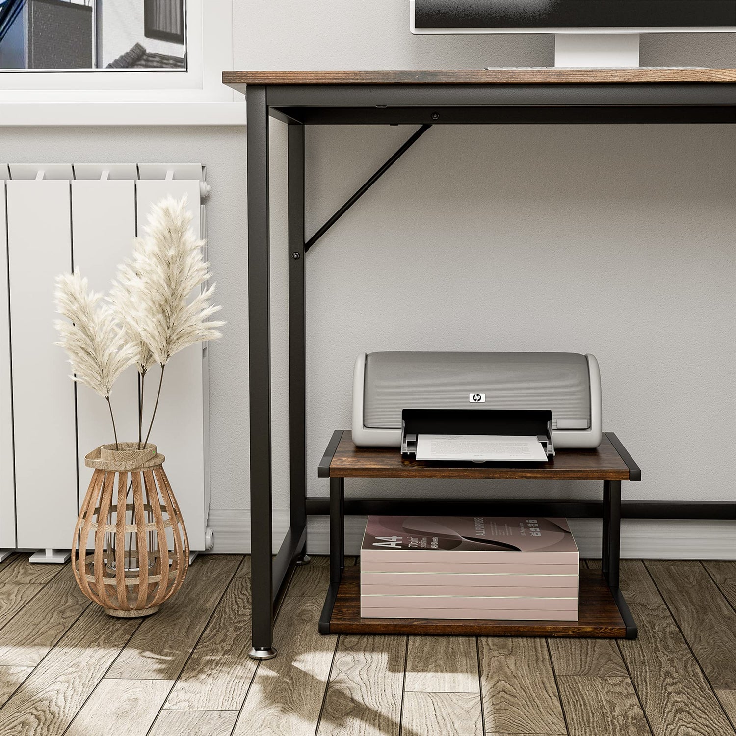 XBurmo Printer Stand with 2 Tier Wood Shelves Desktop Organizer for Small Space Fax Machine Shelf Stand Books Trays Under Desk Shelf with Adjustable Anti-Skid Feet Vintage Brown