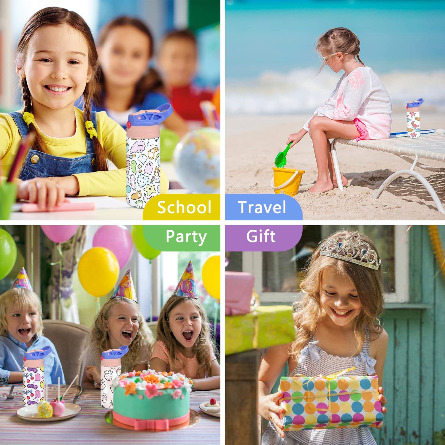 - 【High Quality Material】:These Kids sublimation water bottle blanks are made of high-quality 304 stainless steel BPA-free, odorless, non-toxic. Double wall vacuum insulation technology can keep hot drinks for 6 hours and cold drinks for 12 hours, which is very suitable for daily use.
