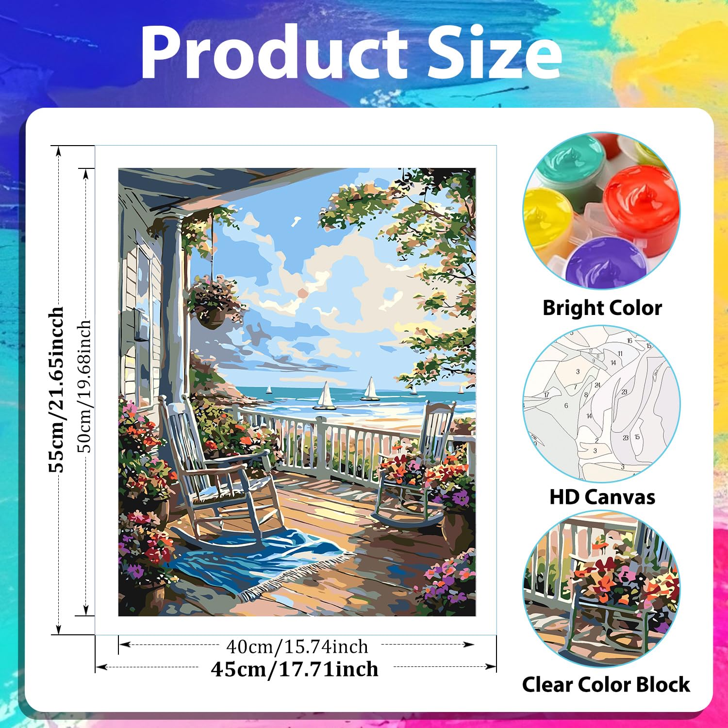 xcemhil Beach Paint by Numbers Kit for Adults, Beach Painting by Numbers, Adult Paint by Number Kits Suitable for Gifts and Interior Decor 16x20 Inch