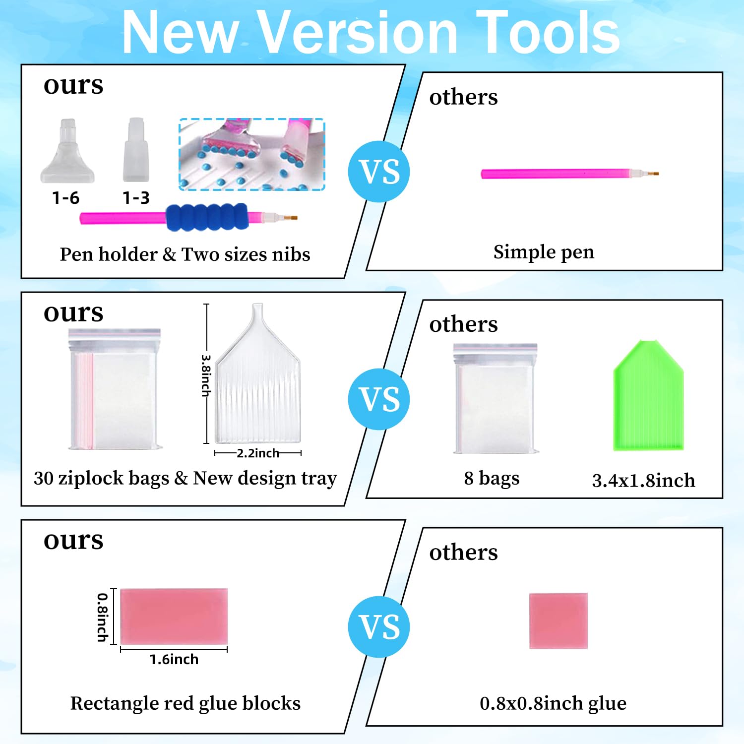 - [What Will You Receive?] This Cat diamond painting kit includes waterproof canvas, colored diamond bag, sticky pen, replacement nibs, glue block, diamond tray, sealable bag, and 30% extra diamonds in each color
