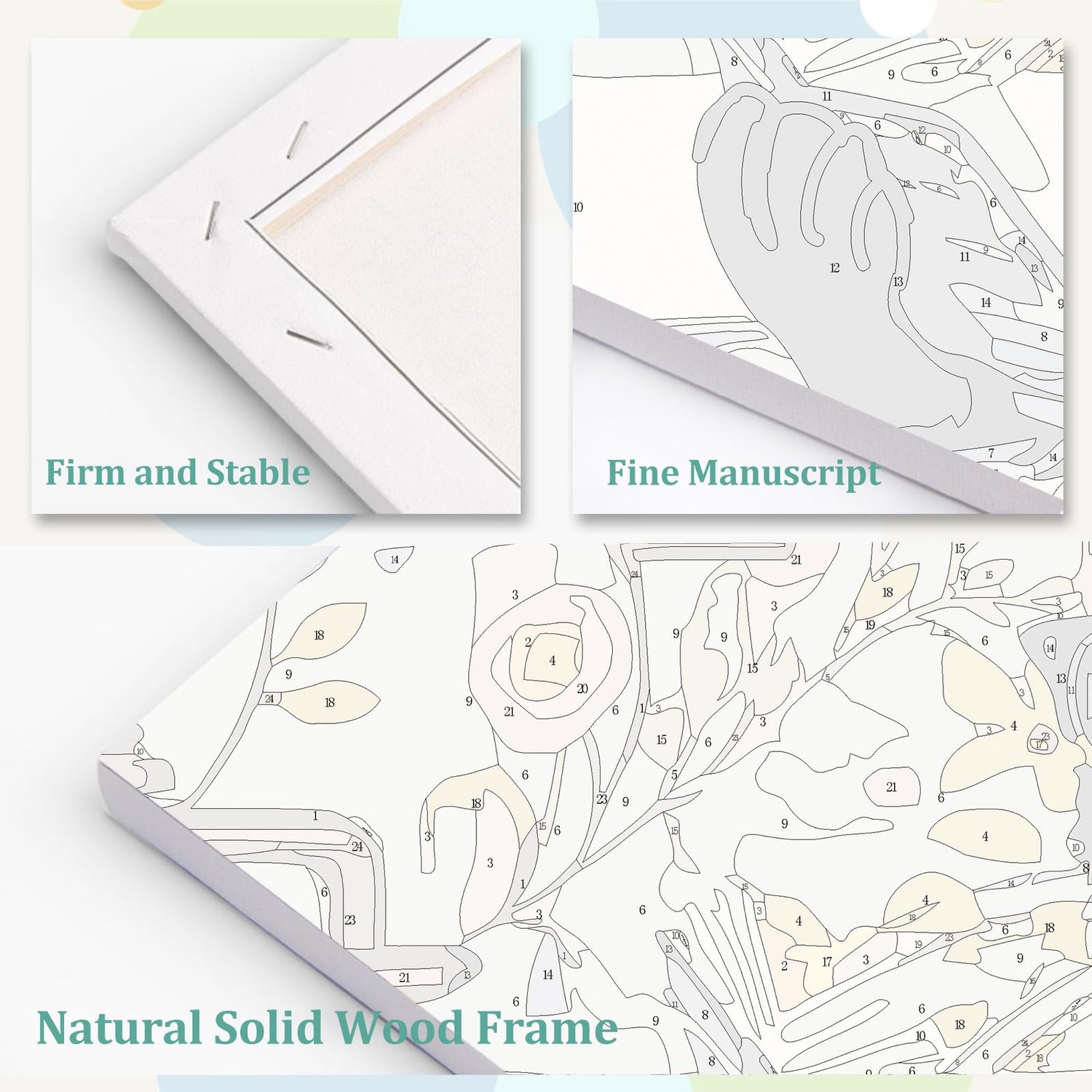 - [Premium Materials] Our paint by numbers for adults and kids uses safe acrylic paints and waterproof canvas. The pigments are easy to color and not easy to fade, so they can be preserved for a long time.