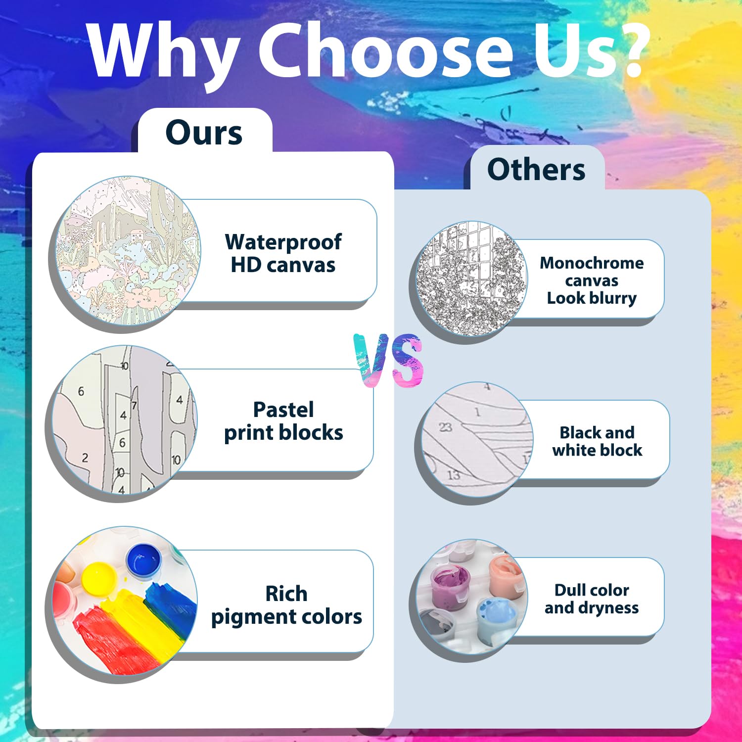 - [Colorful Art] Our paint by numbers are rich in color, and the interweaving of colors and brushstrokes creates a visual feast. They can be used as a unique gift to decorate the space and inject vitality
