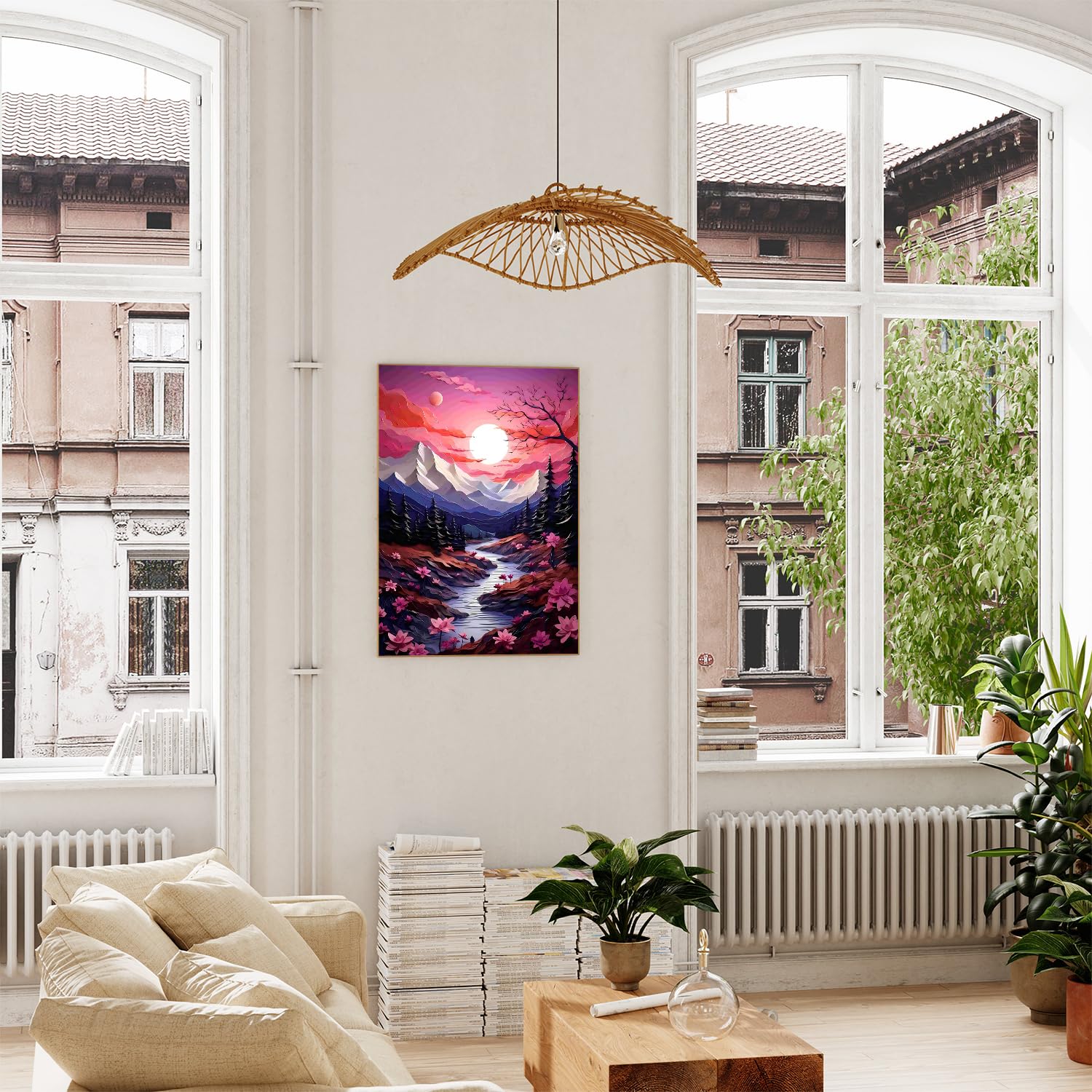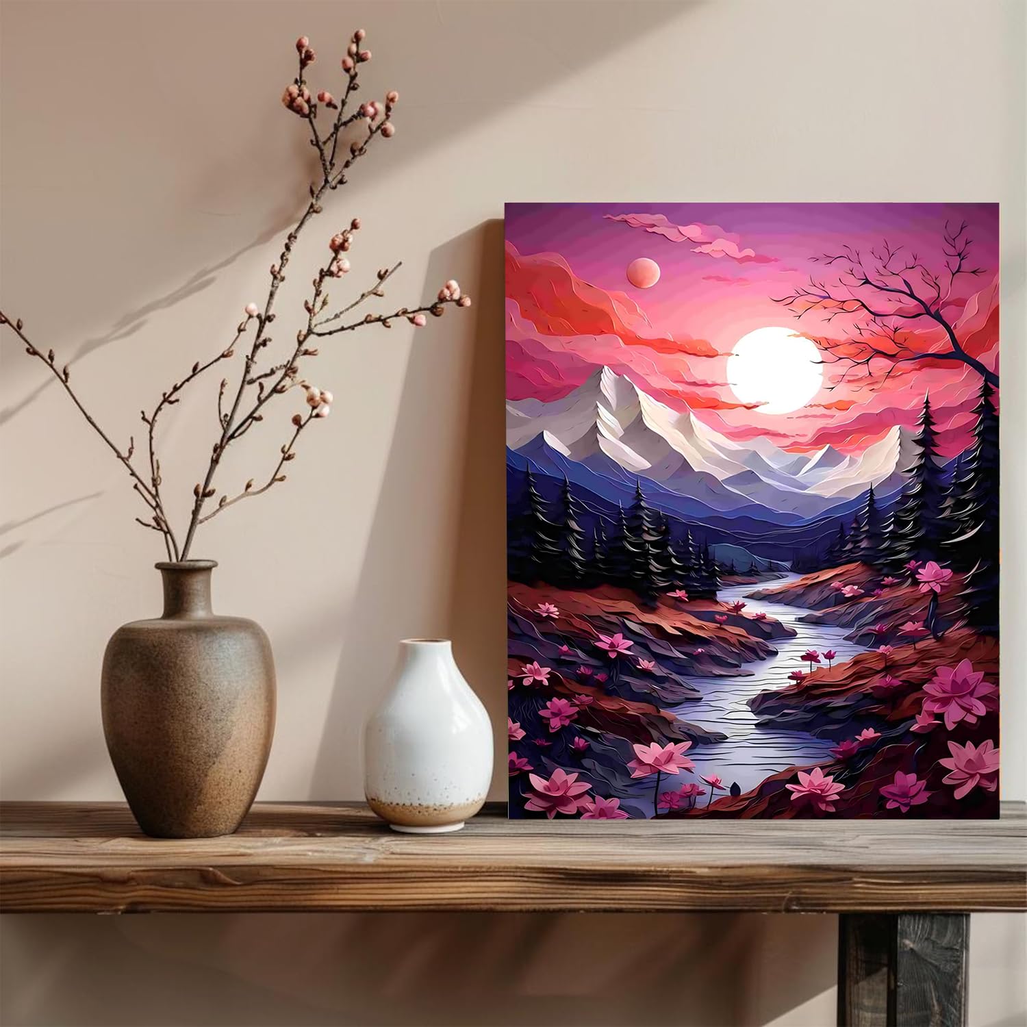 xcemhil Paint by Numbers Kit for Adults Landscape, Paint by Number Moutain and Moon, Pink Landscape Paint by Numbers Kit for Adults Beginner for Gift and Home Wall Decor 16x20 Inch