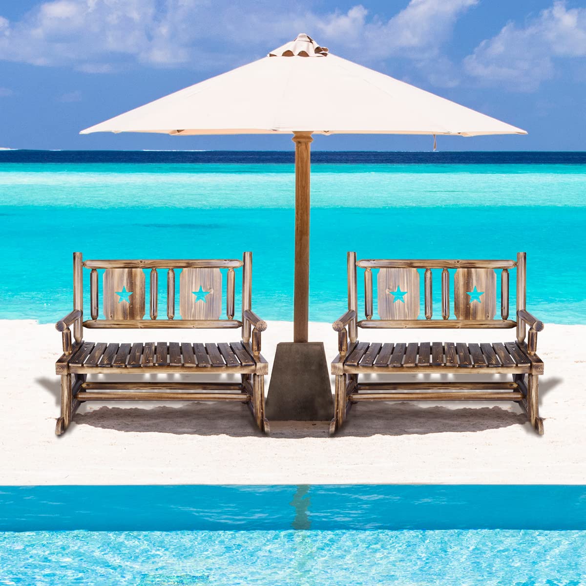XCSOURCE Rustic Wooden Double Rocking Bench for Outdoor Patios – Comfortable Rocker Chair for Two