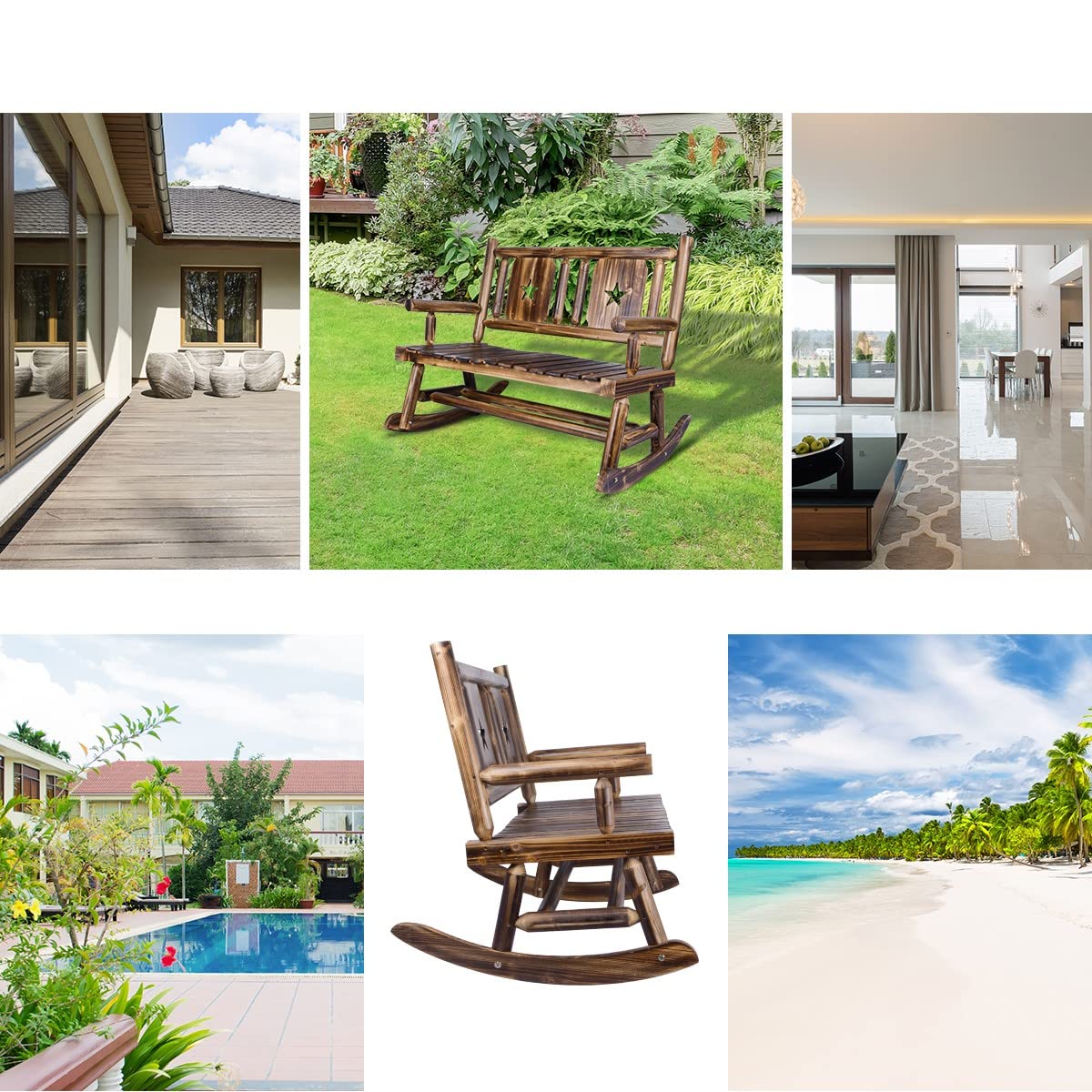 Elevate your patio, courtyard, or balcony with the XCSOURCE Rustic Wooden Double Rocking Bench – an excellent choice for anyone seeking comfort, style, and a touch of nature. Don't miss out on this charming piece of furniture that promises to enhance your outdoor experience.