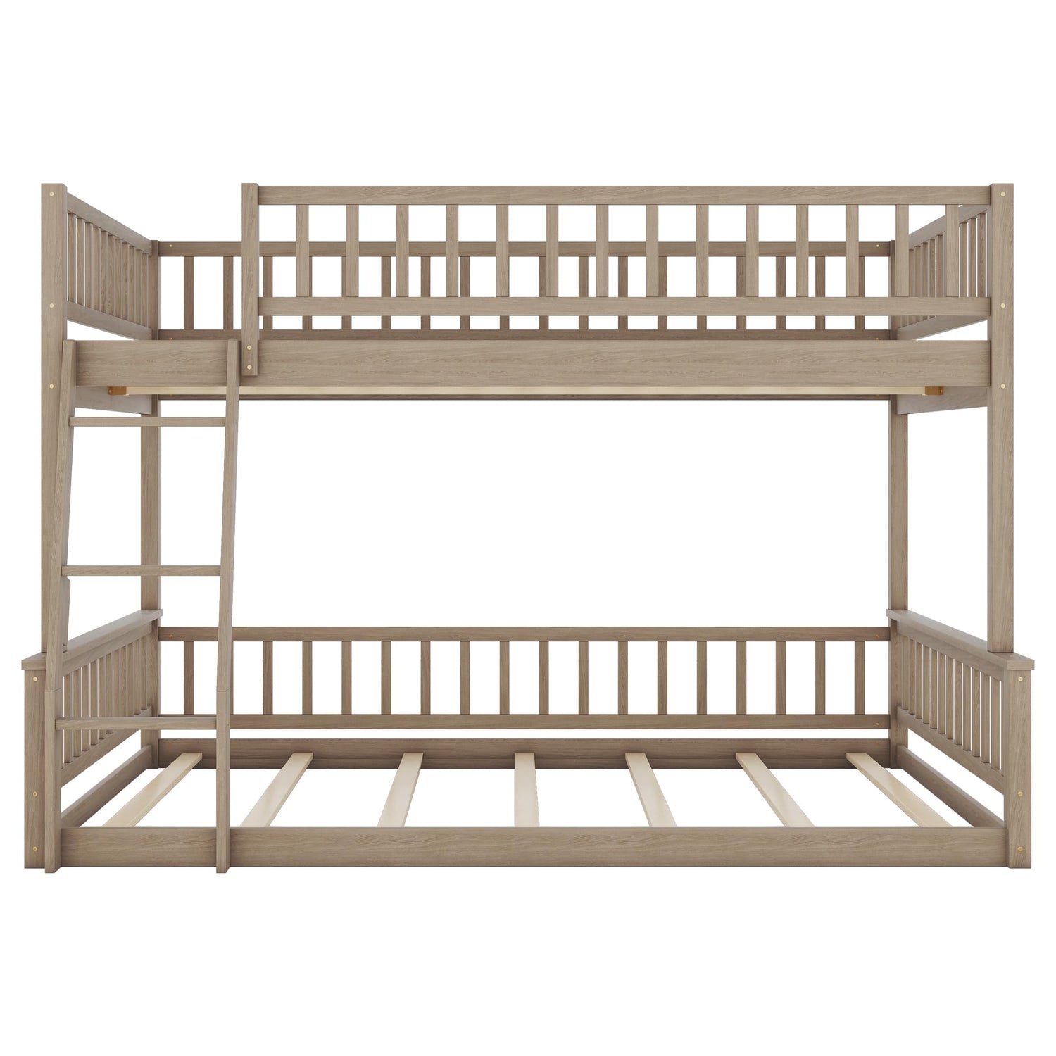 XD Designs Full XL Over Queen Bunk Bed with Safety Guardrails, Solid Wood Floor Bunk Bed Frame with Sturdy Slat Support for Kids Teens Adults, Detachable Design (Walnut-tra)