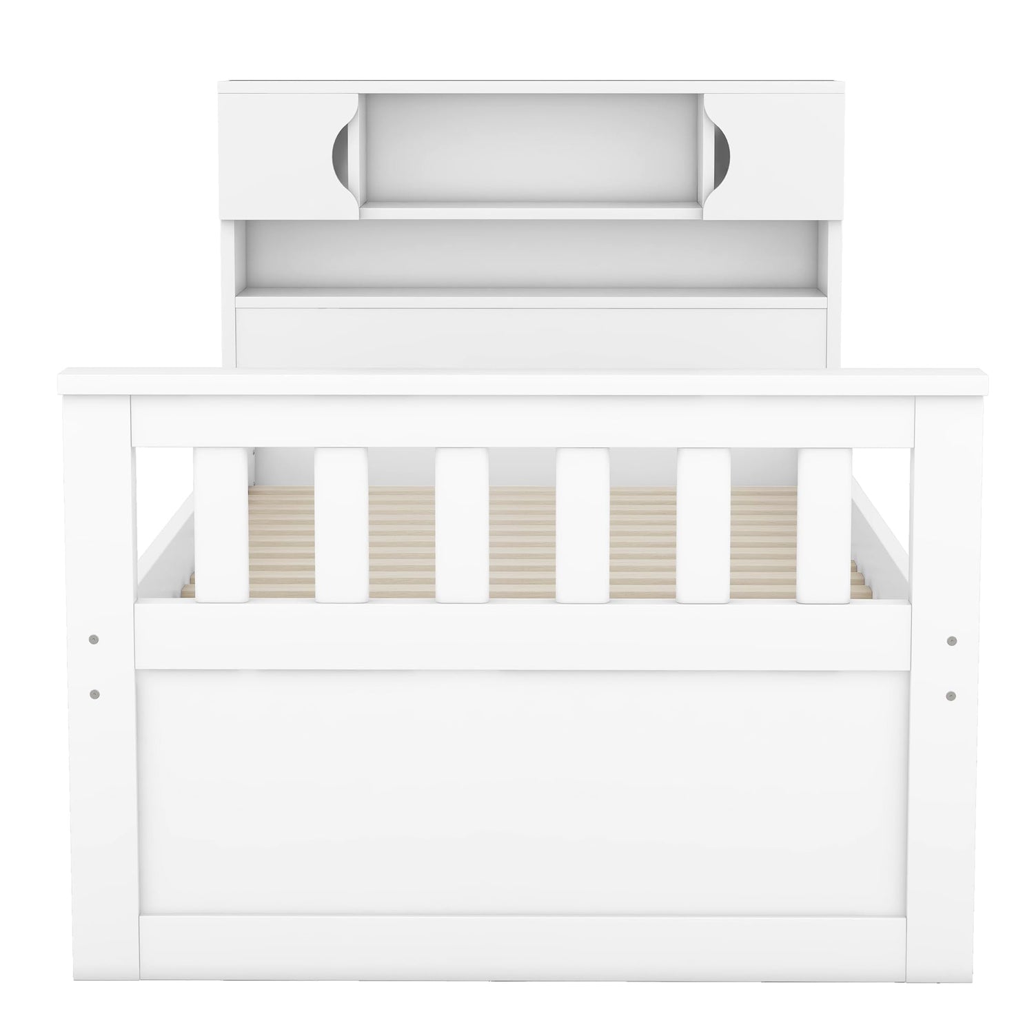 Modern Twin Size Captain Bed with Storage Headboard and 4 Drawers in White by XD Designs
